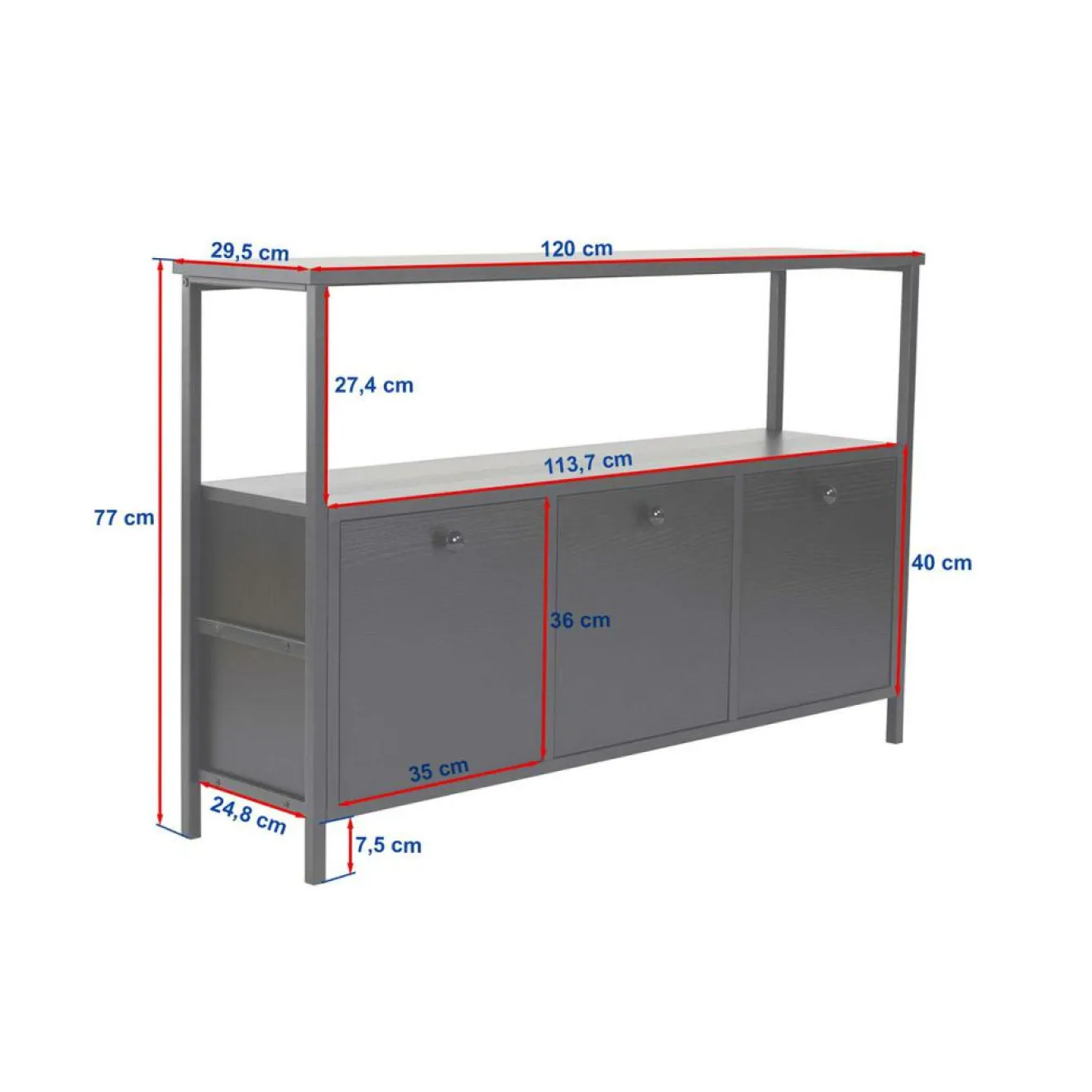 Console : Largeur : 120 cm Hauteur : 77 cm Profondeur : 29.5 cm