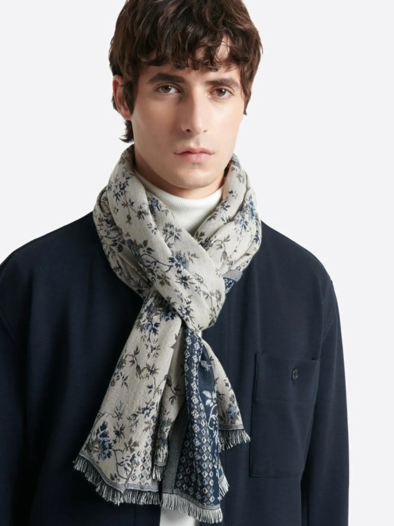Homme Devred Coffret écharpe fleurie en viscose bleu cobalt – 185×70 cm