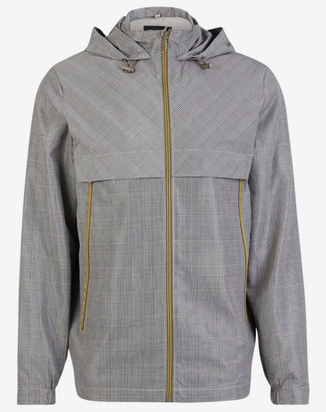 Ce coupe vent court droit en nylon déperlant à carreaux, se pare d’une capuche, d’un col montant, de manches longues, d’une fermeture à glissière, de 2 poches zippées en biais sur l’avant et d’une poche latérale à l’intérieur.