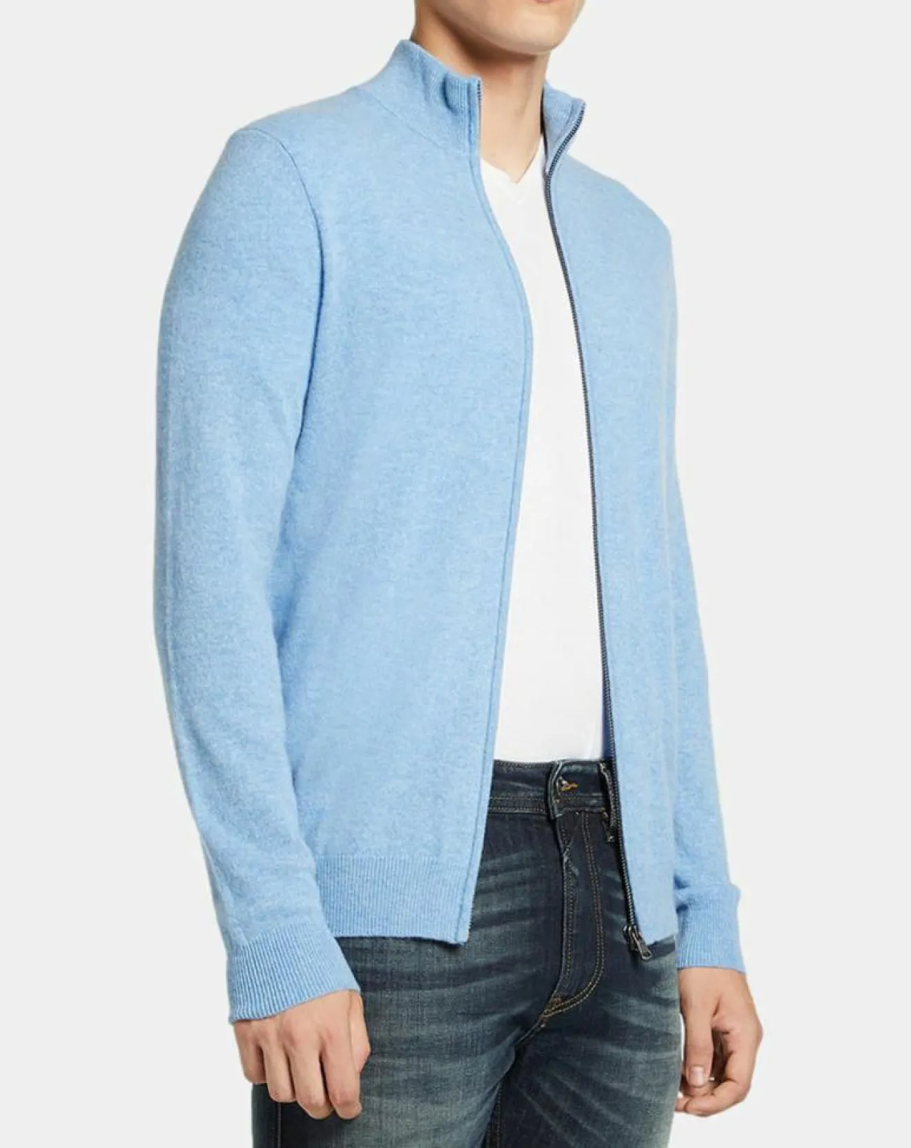 Ce gilet droit Galeries Lafayette en cachemire est doté d’un col montant, de manches longues, d’une fermeture à glissière et de finitions côtelées.