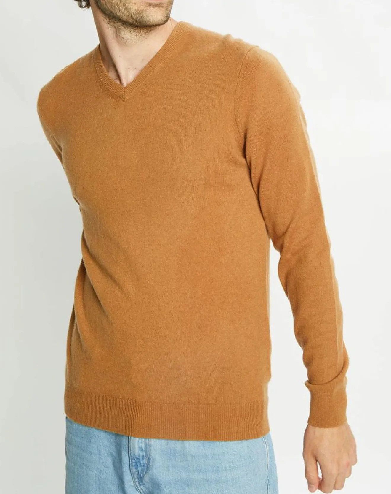 Ce pull droit Galeries Lafayette en cachemire est muni d’un col V, de manches longues et de finitions côtelées.