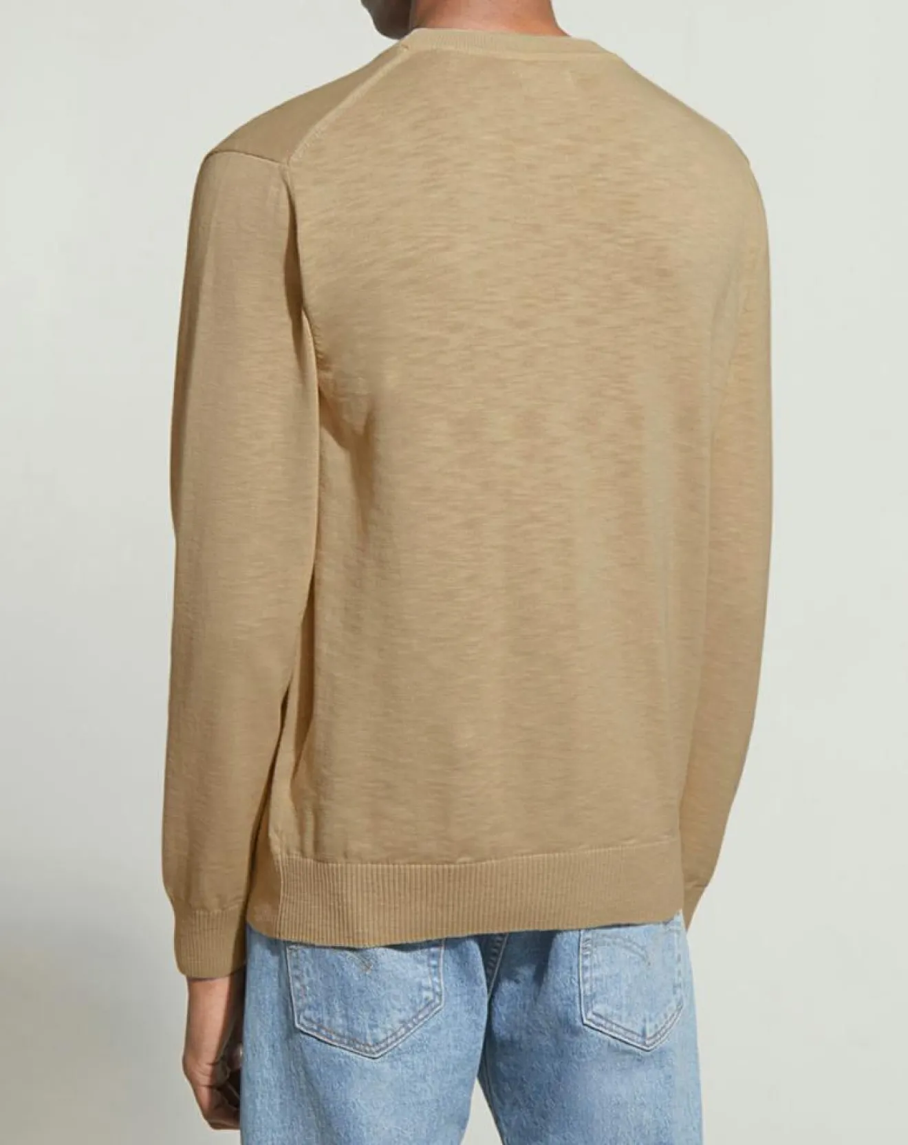 Ce pull Gant en fine maille de coton flammé est muni d’un col rond avec détail V, d’une signature brodée poitrine et de finitions côtelées