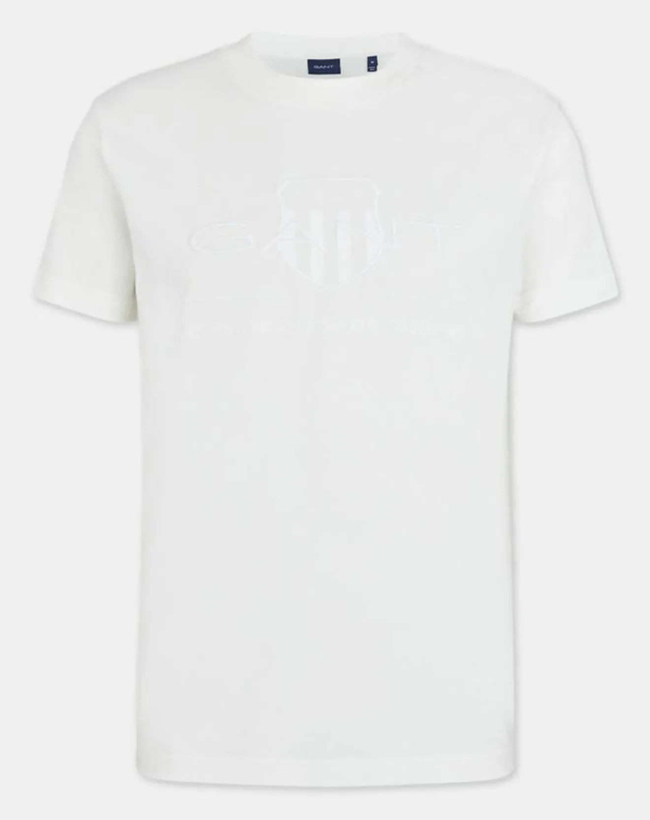 Ce t-shirt droit Gant en coton est muni d’un col rond côtelé ainsi que d’une broderie ton sur ton signature et logo sur l’avant