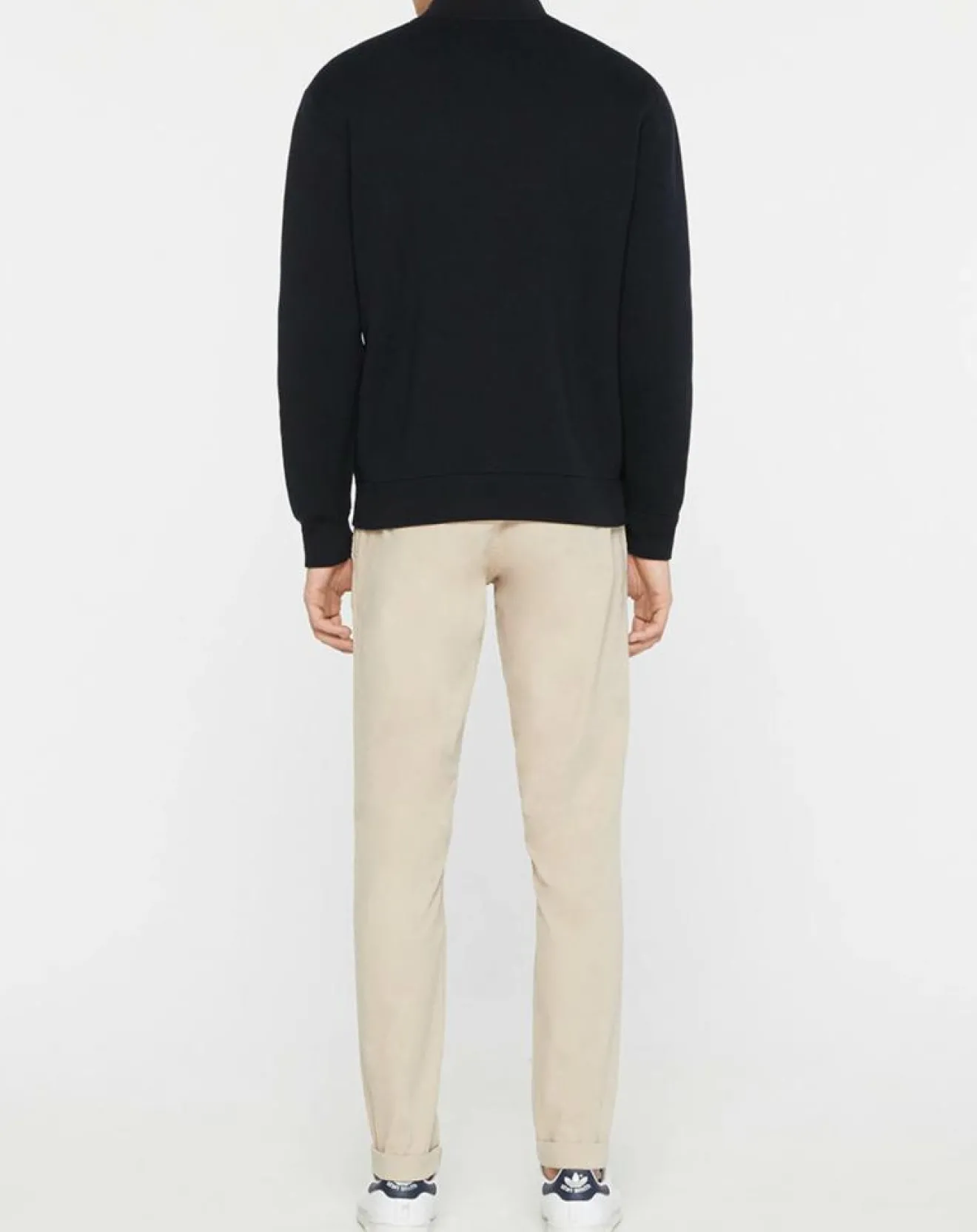 Il est muni d’un col rond, de manches longues, d’une fermeture à glissière, de 2 poches latérales zippées sur l’avant, d’un jacron siglé cousu sur le côté gauche de la poitrine et de finitions côtelées