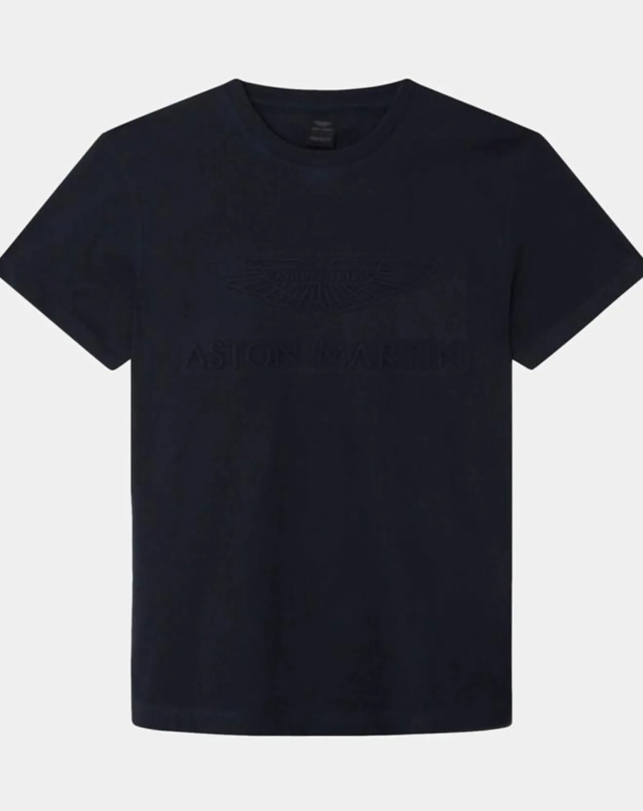 Ce t-shirt droit issu de la collaboration Aston Martin Racing x Hackett London en coton est muni d’un col rond côtelé et de la signature embossée devant avec logo