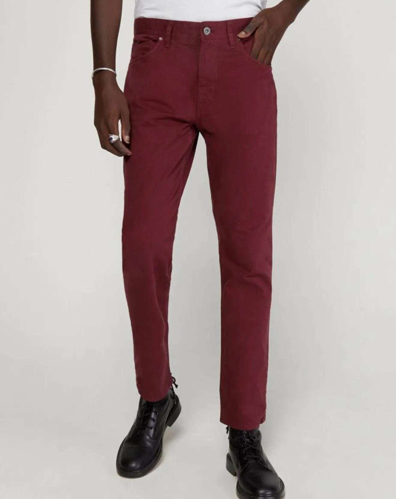 Pantalon droit en de coton stretch uni