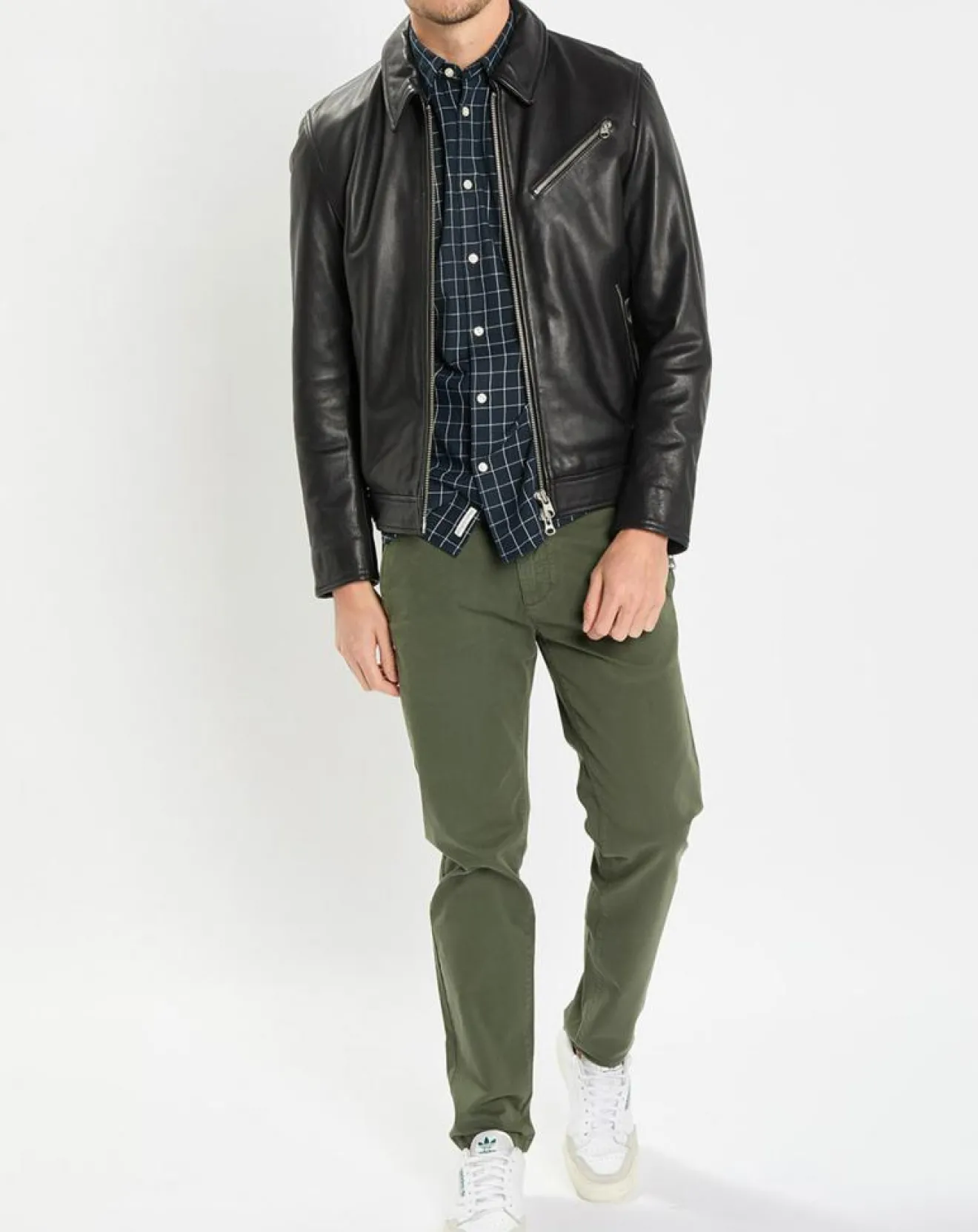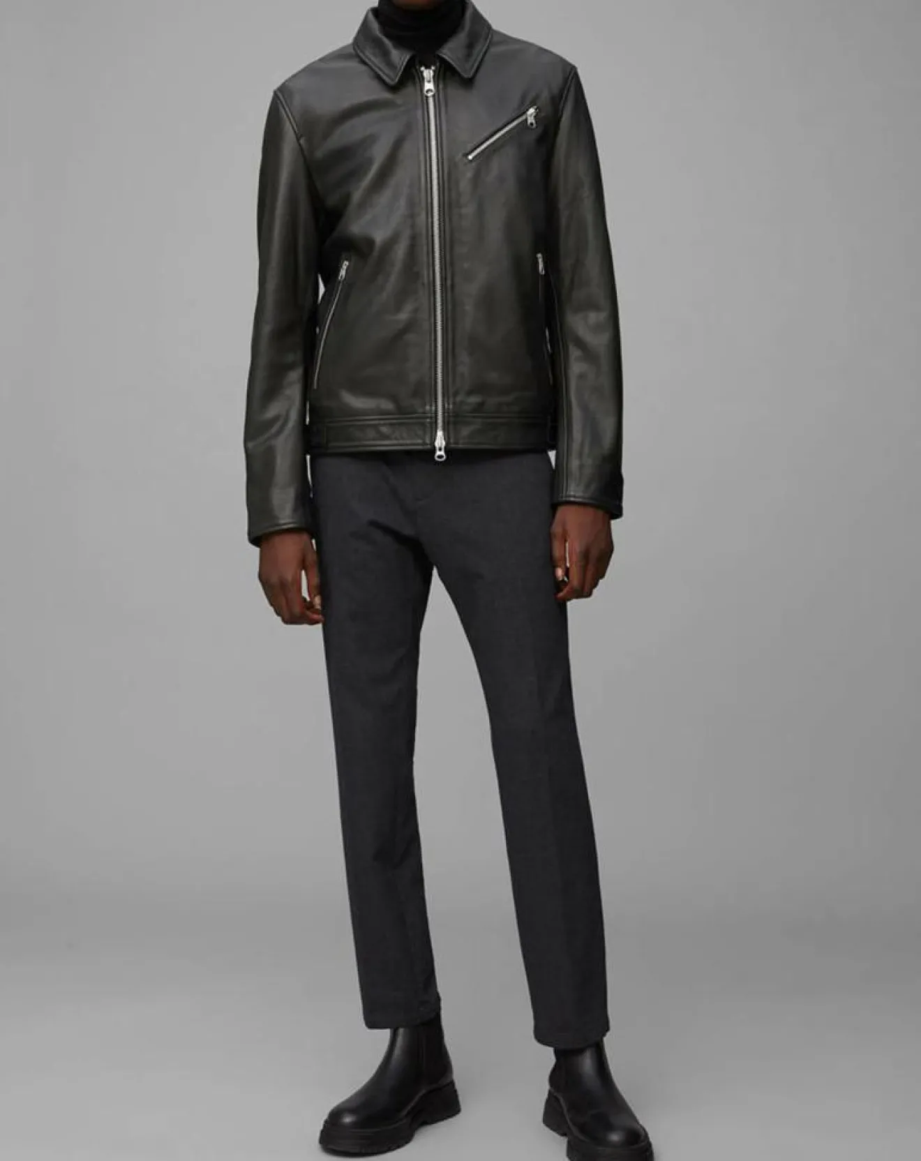 Au design soigné et intemporel : la veste en cuir de vachette de qualité supérieure, de coupe classique.