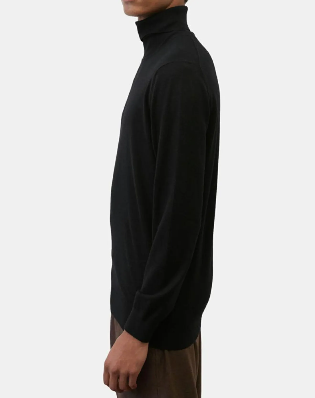 Moelleux, masculin et facile à assortir : le pull-over haut de gamme à col roulé en pure laine mérinos vierge de la meilleure qualité.