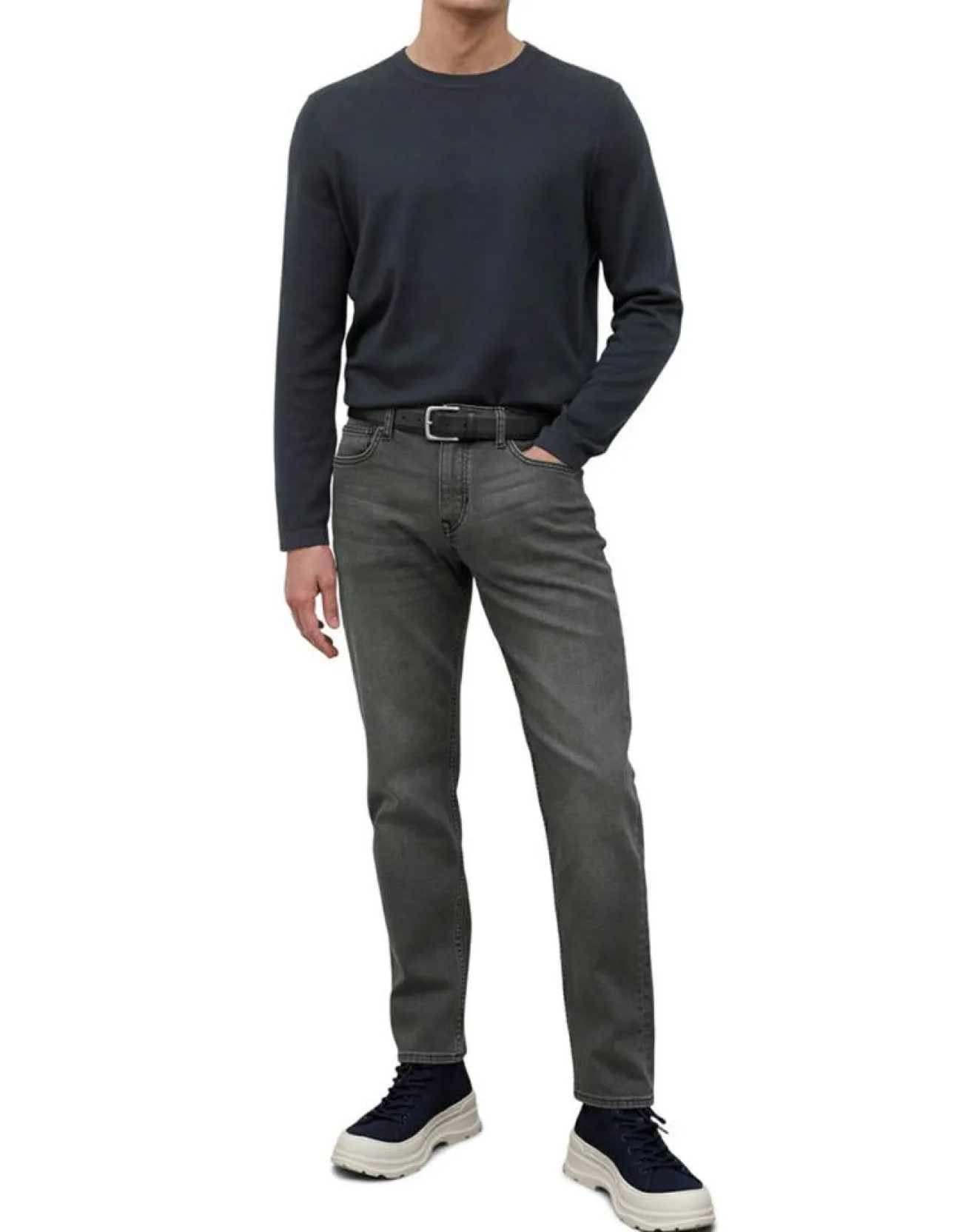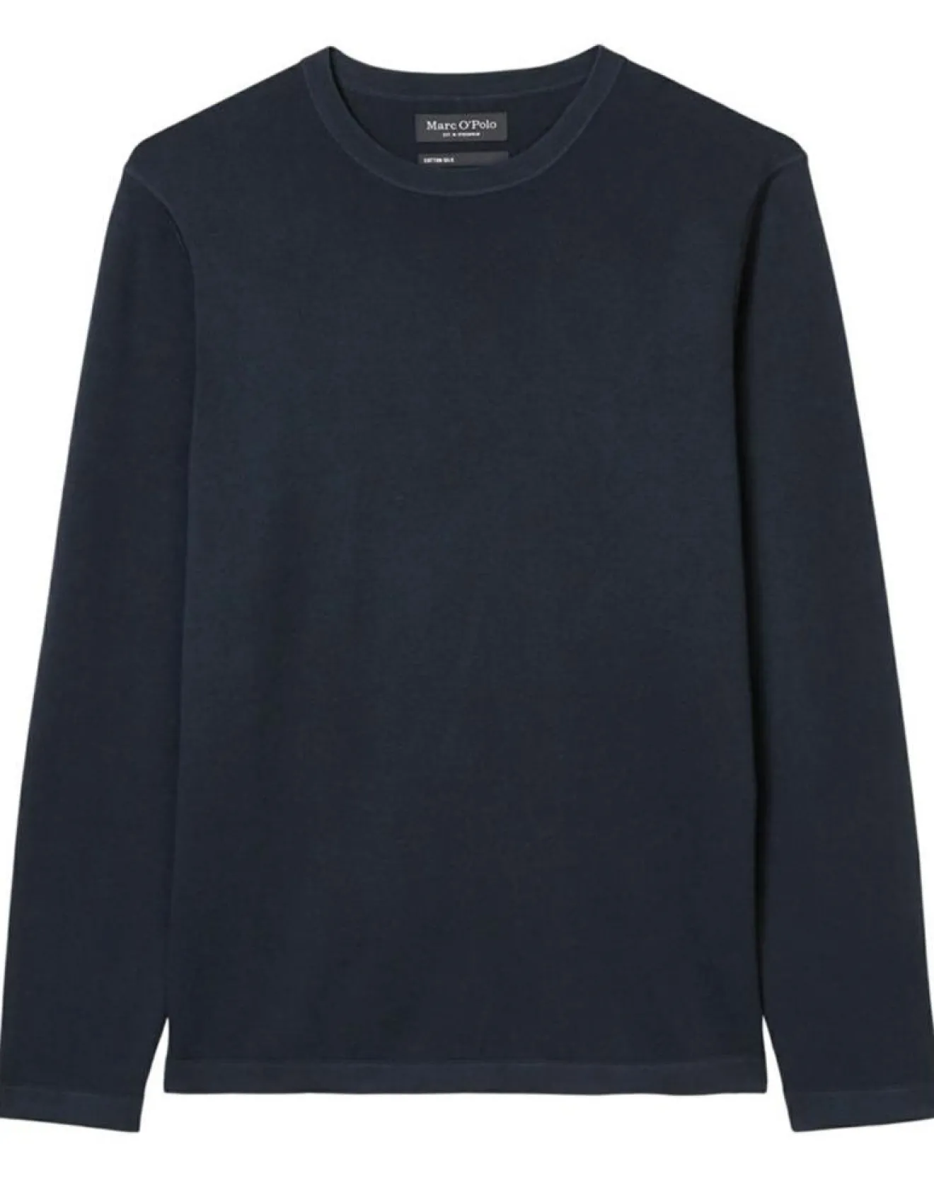 De coupe Regular Fit agréable à encolure ronde classique et fines bordures côtelées au bas des manches et sur la base droite.