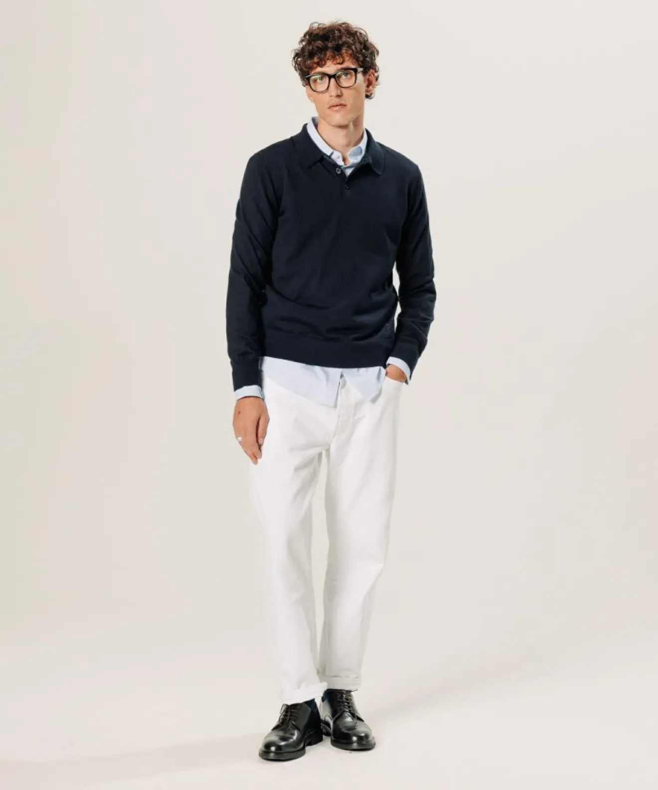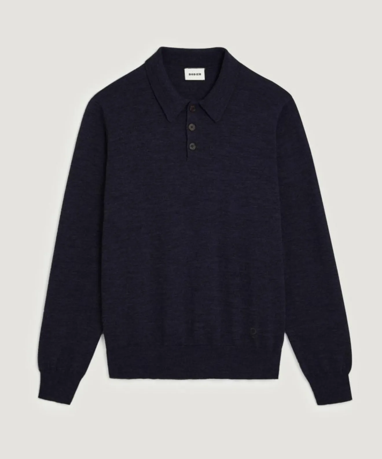 Homme Rodier Pull Gilbert 100% laine col polo bleu nuit