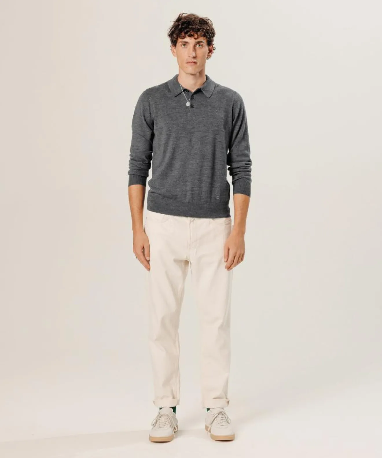 Homme Rodier Pull Guillaume 100% laine col polo gris foncé