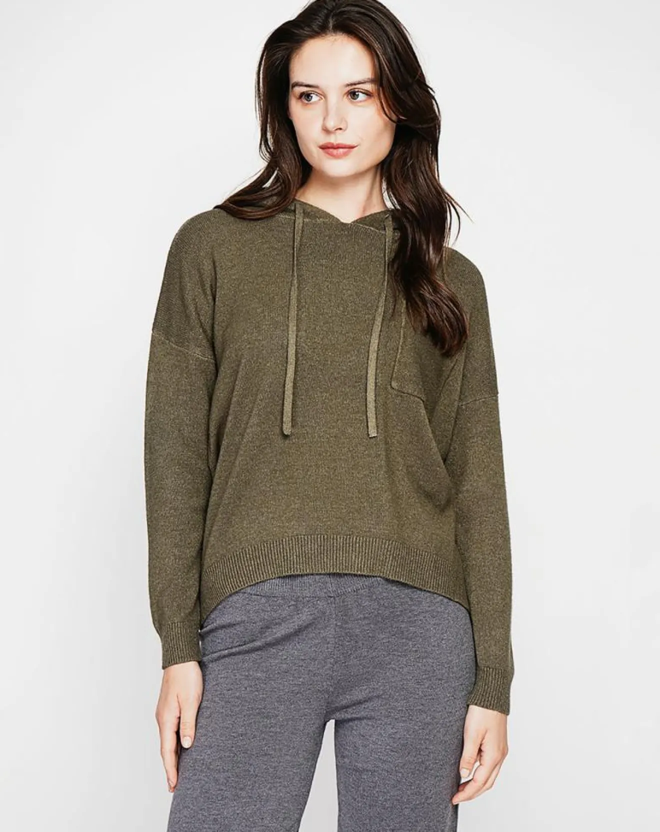 Pull à capuche poche plaquée poitrine à manches longues en 4 fils