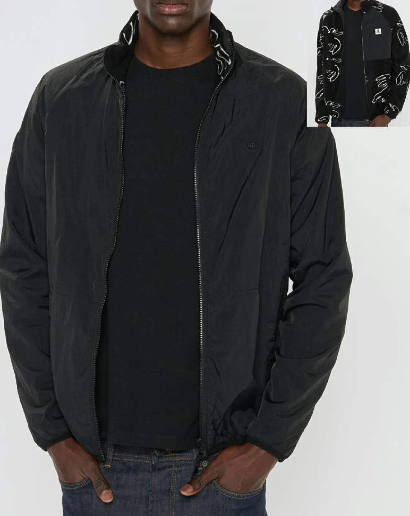Cette veste de survêtement courte droite Element en nylon déperlant réversible sur une doublure polaire color-block, se pare d’un col montant, de manches longues, d’une fermeture à glissière, de 2 poches latérales devant, d’une poche poitrine sur la doublure ainsi qu’un logo sur le côté gauche de la poitrine