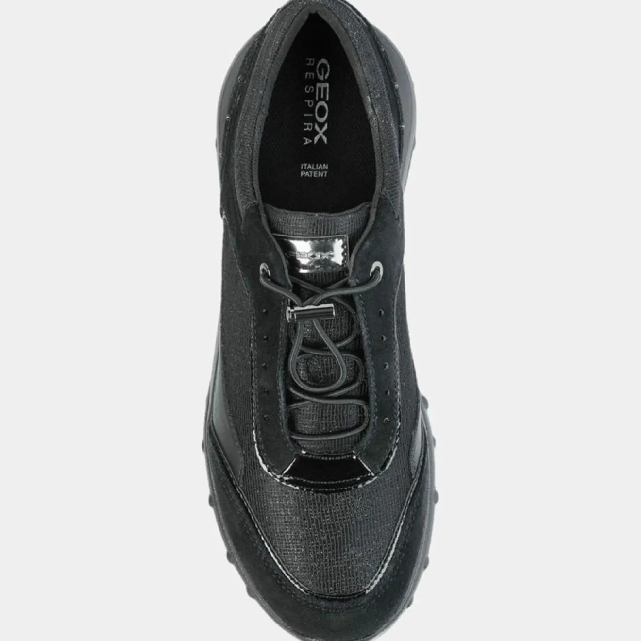 Ces baskets basses Geox présentent une fermeture lacets, des empiècements en matière suédée, des strass et des détails pailletés.