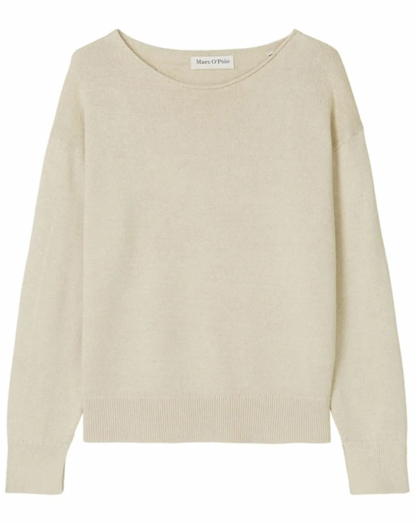 Ce modèle a une encolure bateau large et décontractée, des épaules tombantes et des bordures côtelées au bas des manches et à la base.