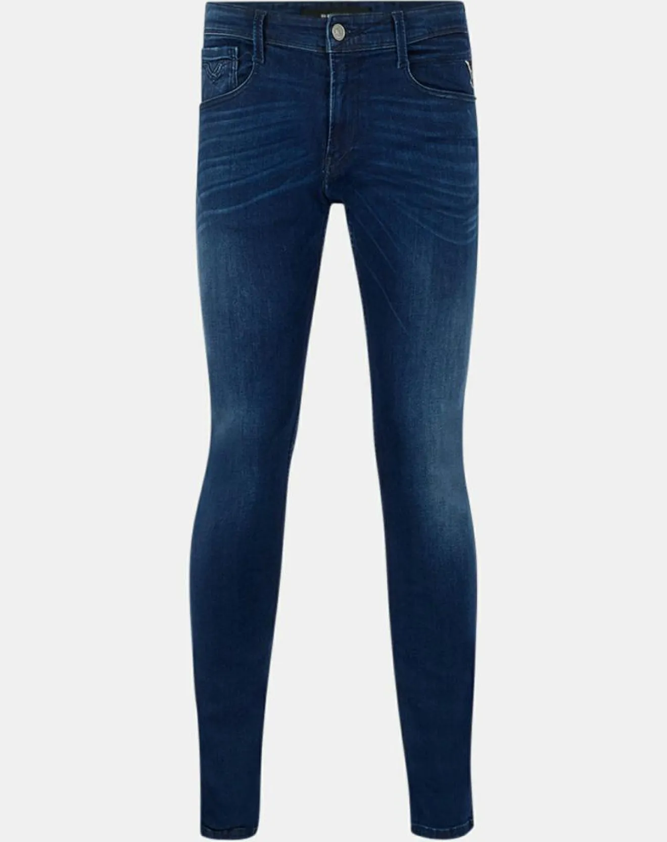 Ce jean ajusté Replay à teneur en coton effet délavé, présente une taille haute, une fermeture zippée rehaussée d’un bouton siglé, 2 poches cavalières et 1 poche ticket ainsi que 2 poches plates au dos.