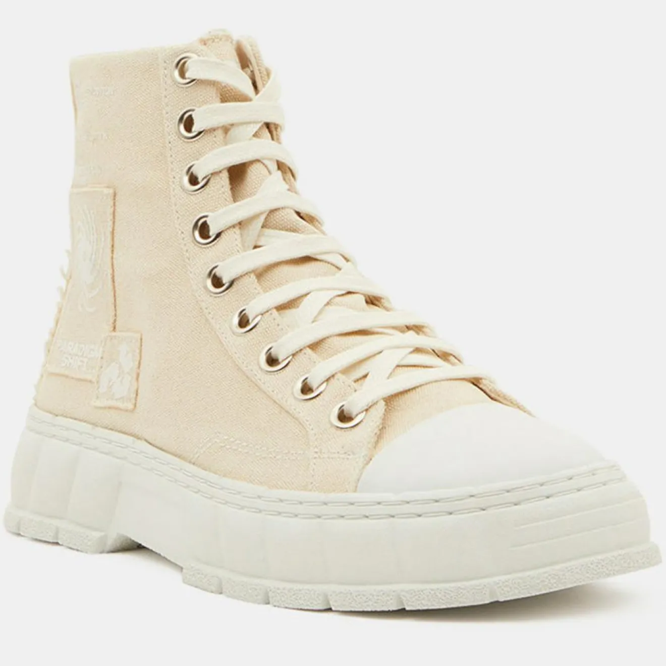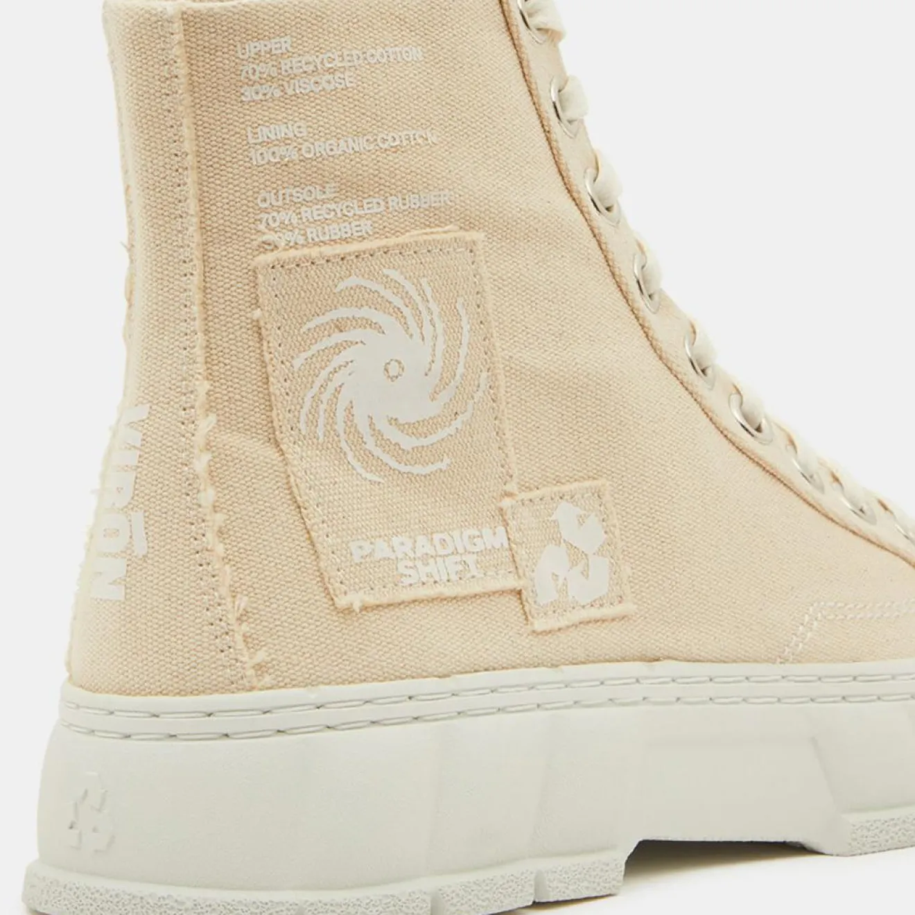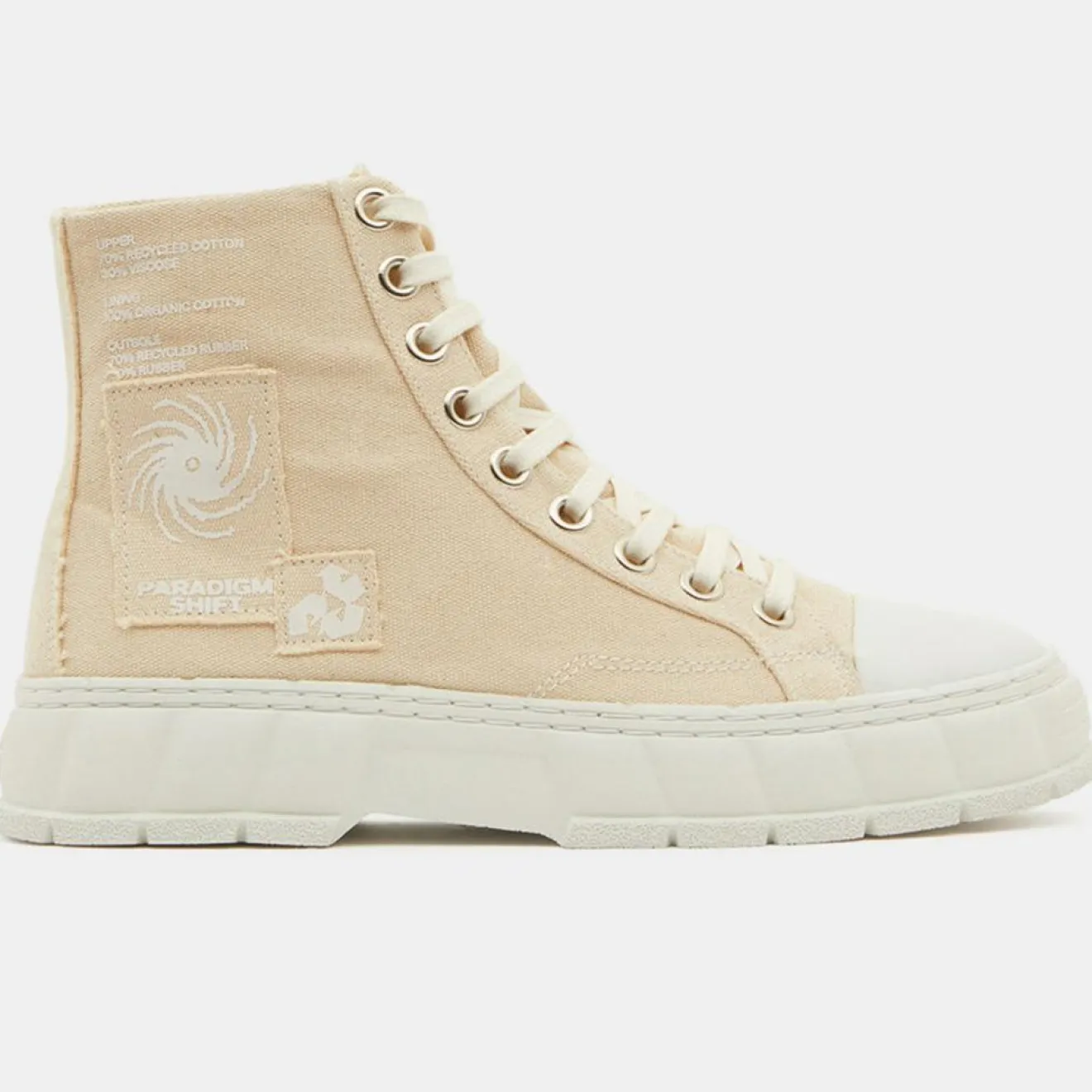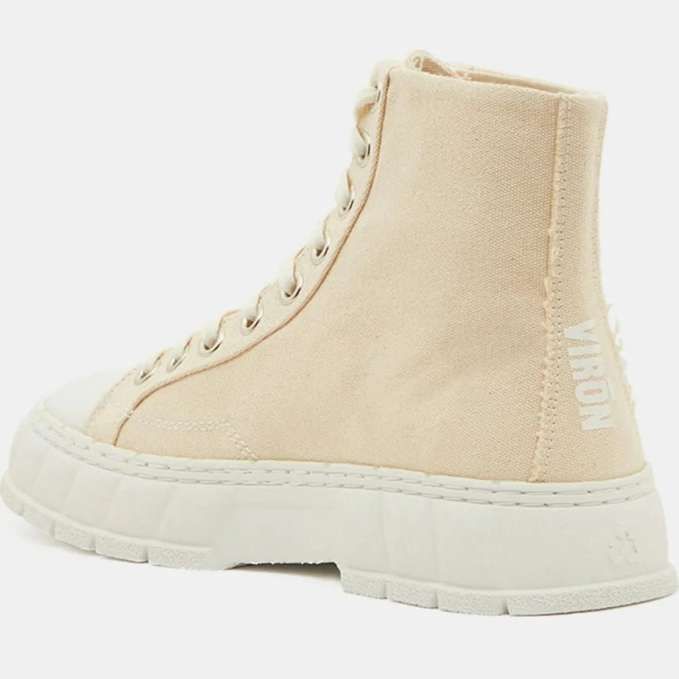 Ces baskets montantes à plateforme Virón composées de toile de coton recyclé présentent un bout rond, un laçage 9 oeillets métalliques et la signature