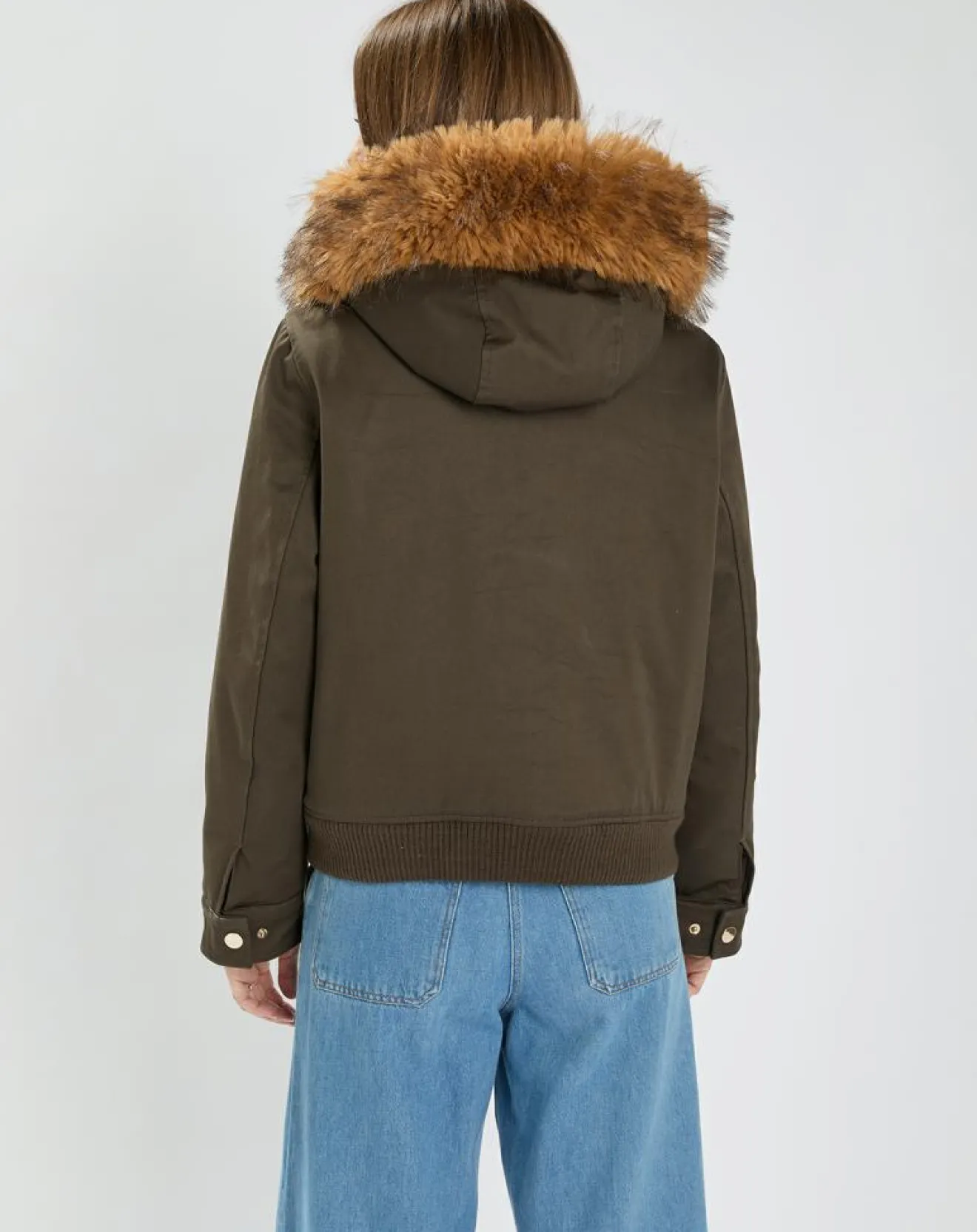 Ornée d’une capuche avec fausse fourrure, son col montant et sa fermeture zippée à pressions assurent chaleur et confort