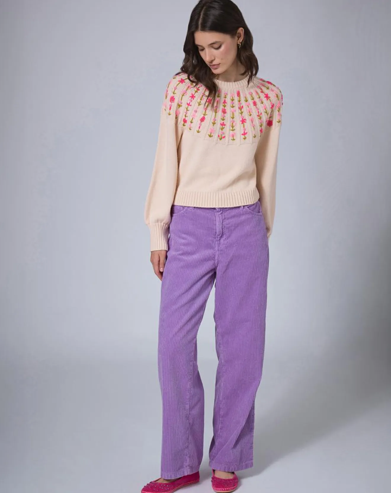 Maille brodée de fleurs sur le haut à l’avant et à l’arrière