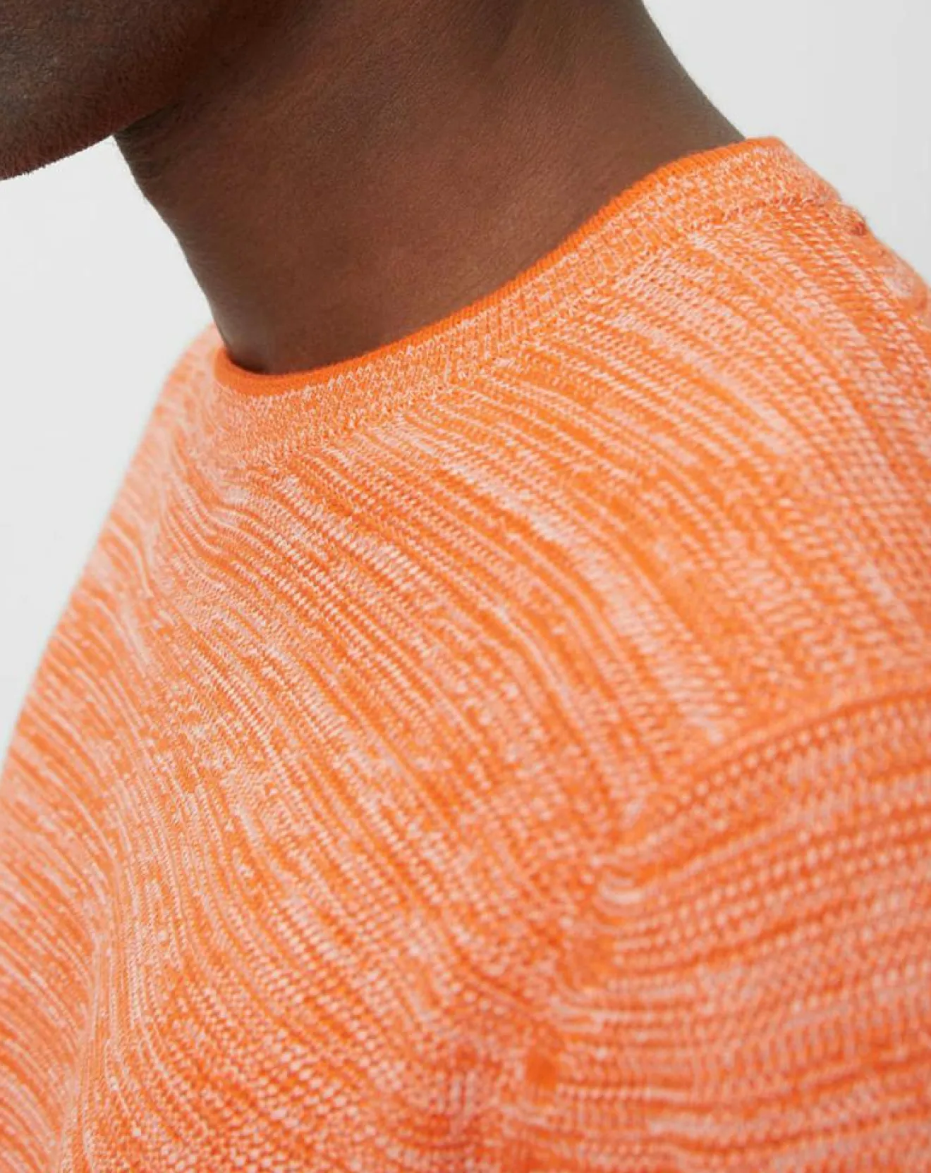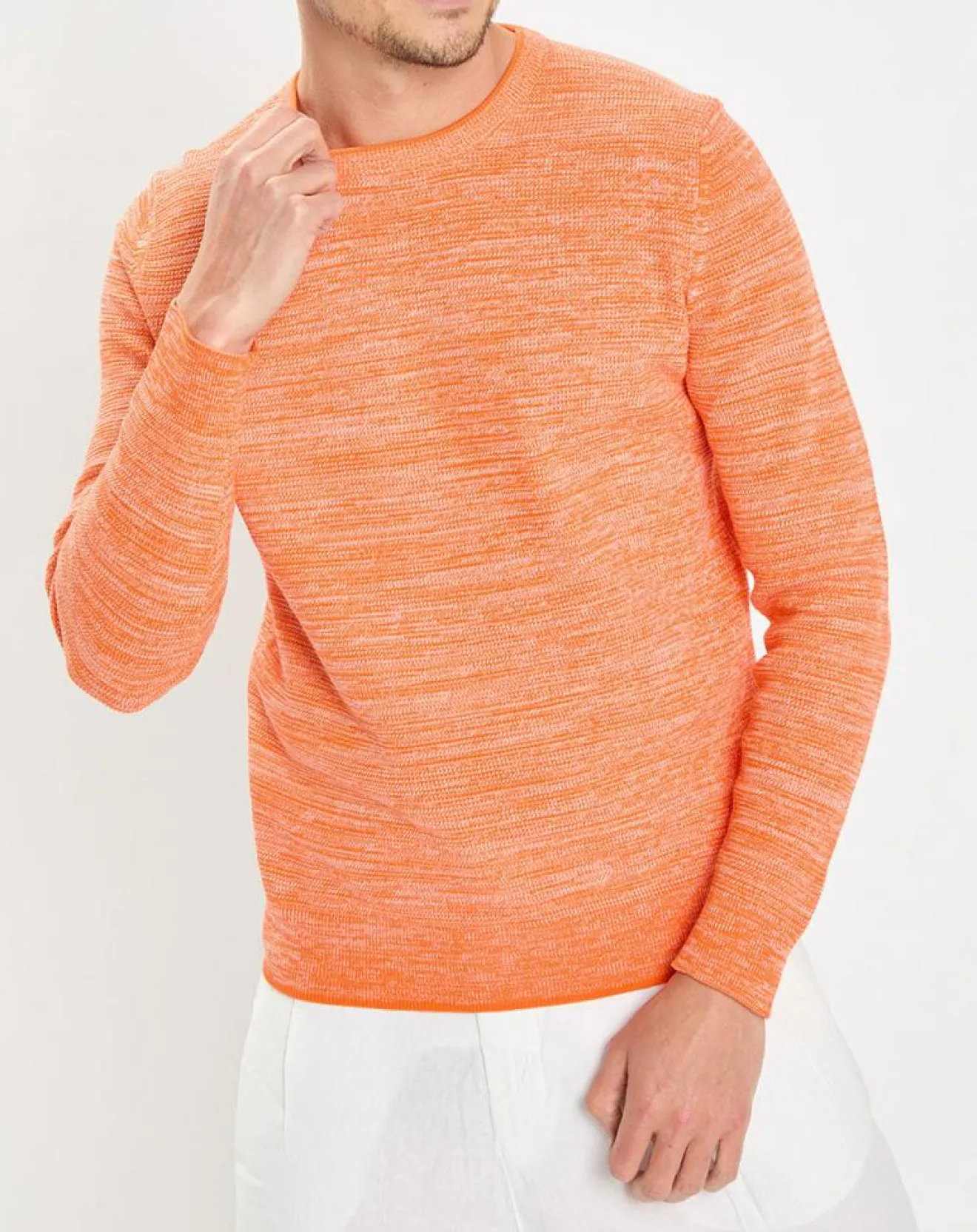 Effet mouliné original : le pull en fil retordu multicolore de coton bio.