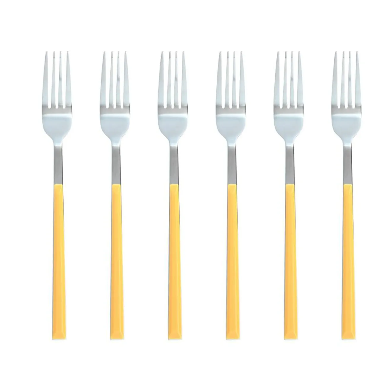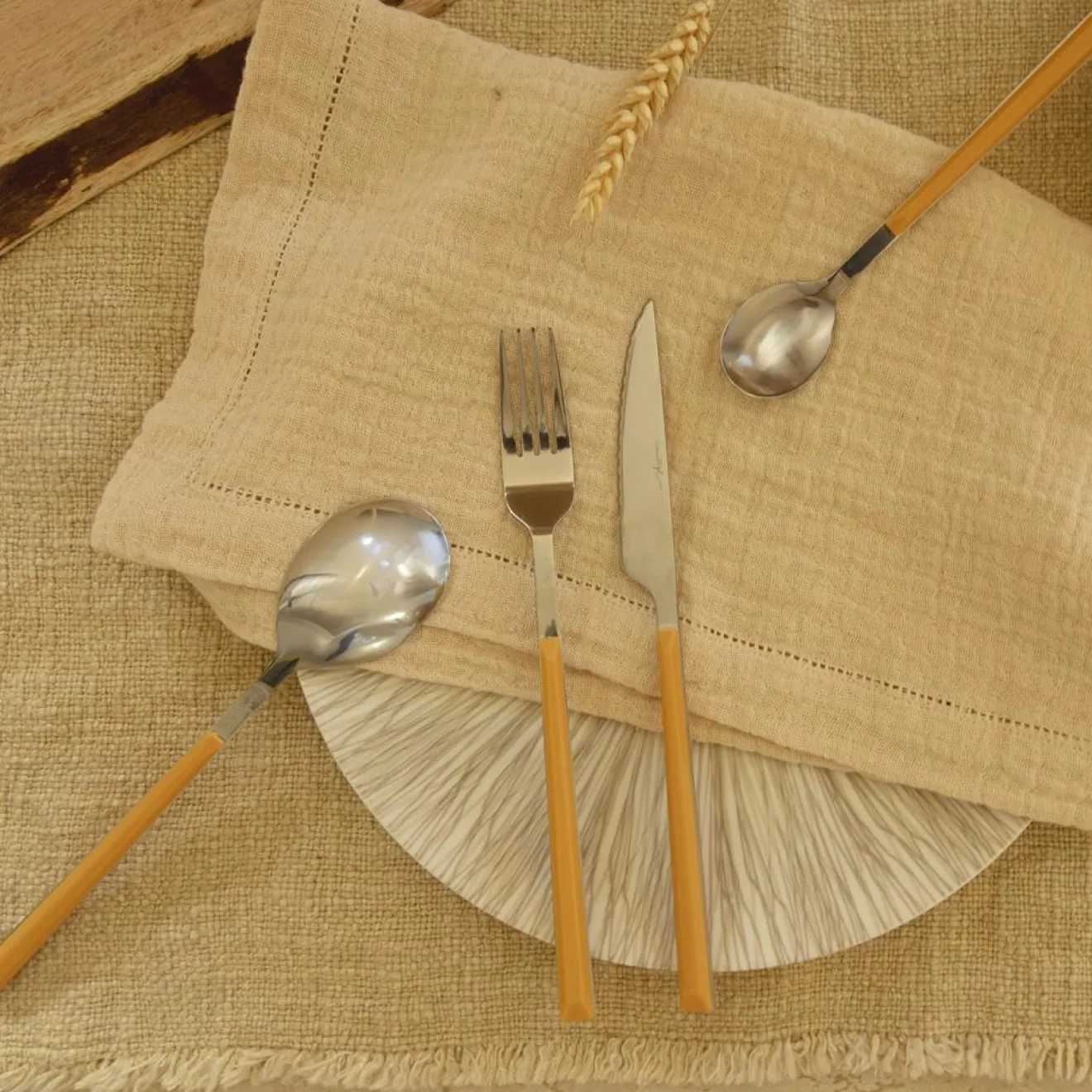 Découvrez COLORAMA , une gamme de couverts avec manches en ABS. Les couverts couleur safran, apporteront une touche élégante et tendance à votre table. Une gamme également idéale pour un usage quotidien.