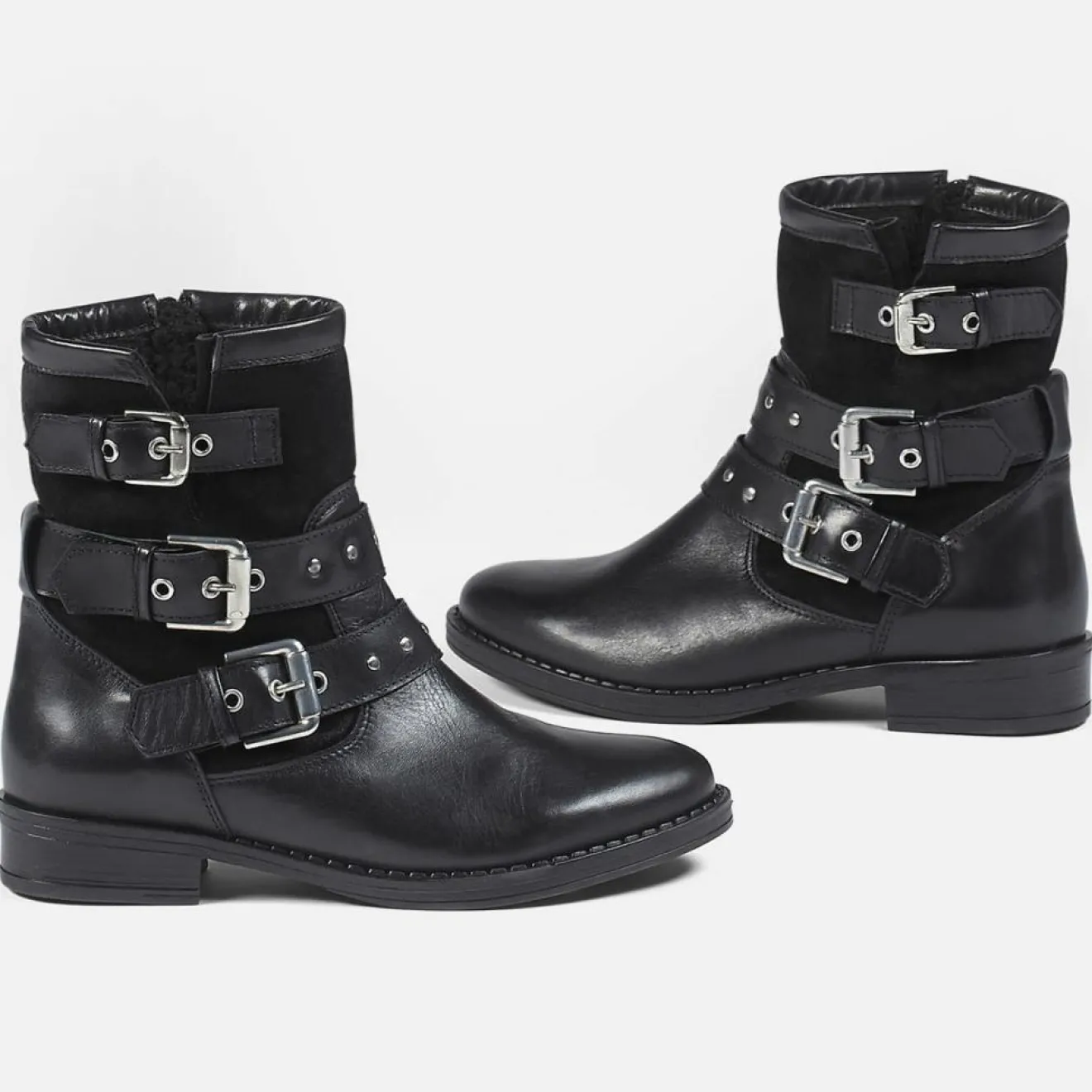 Sous ses airs de dure à cuire, la ranger Fitelo vous réserve un intérieur entièrement fourré, tellement doux et moelleux ! Son cuir lisse lui apporte une touche de rock attitude tandis que son velours de cuir enveloppe de douceur votre cheville, surtout par temps de pluie et de neige… Ornée de trois larges brides à boucle, elle est parfaite pour aborder l’hiver en style et en réconfort !