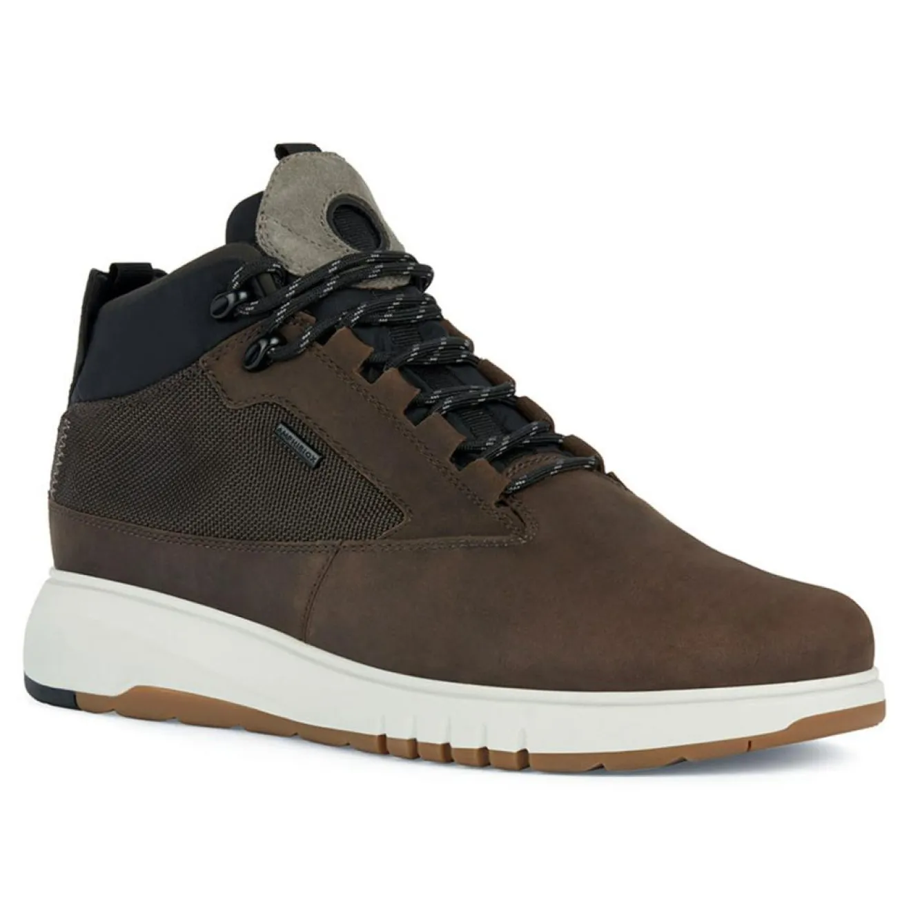 Ces baskets montantes Geox en cuir suédé, tissu et synthétique sont munies de la technologie Amphibox, une membrane respirante et imperméable.