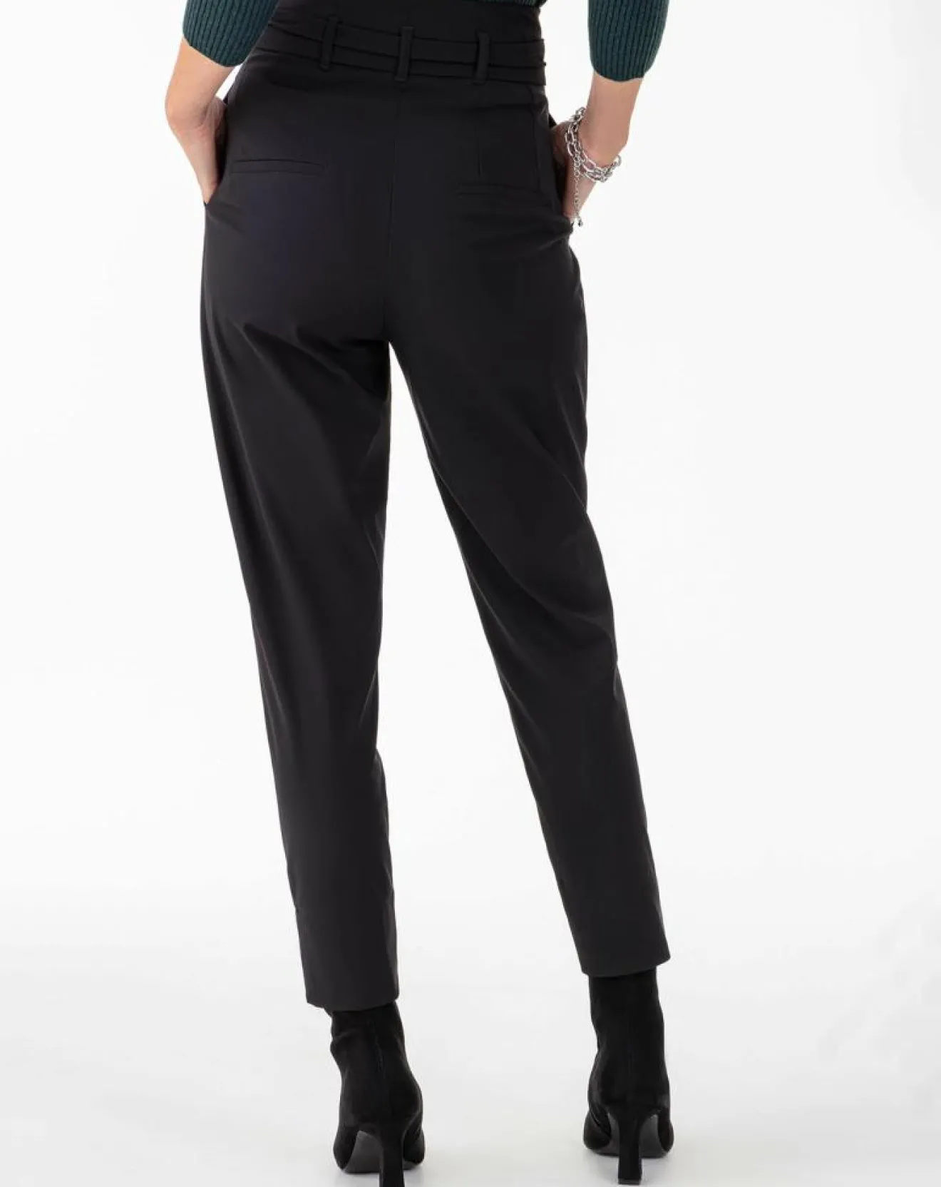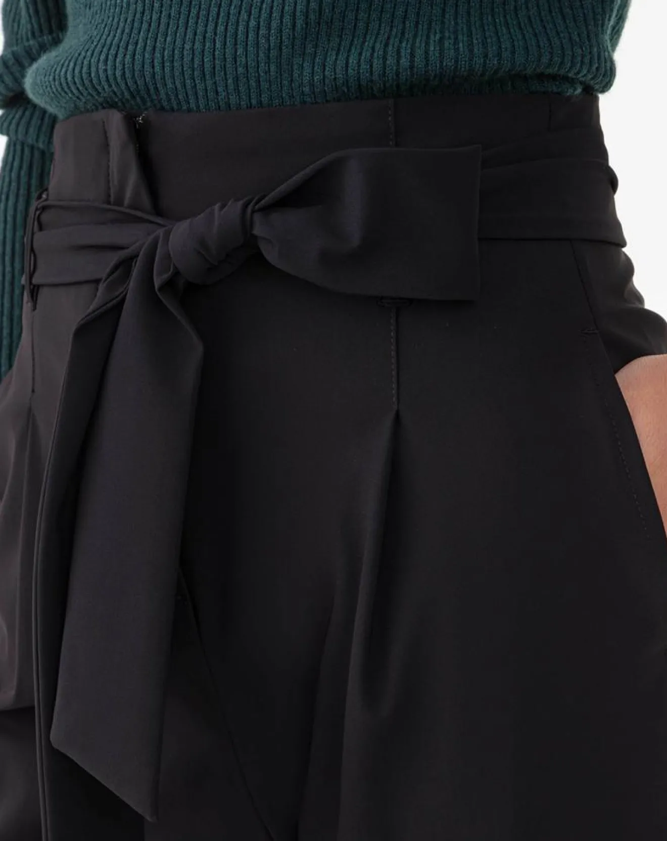 – Pantalon paperbag à plis en jersey ceinture – Noir – Fermeture éclair et ceinture avec passants