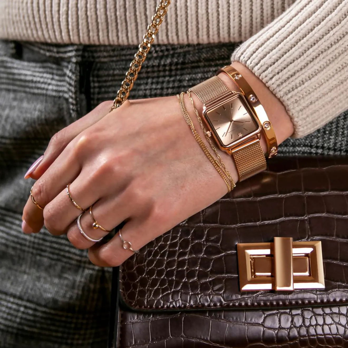 Set Montre Femme & Bracelet Gold Plaza en Acier