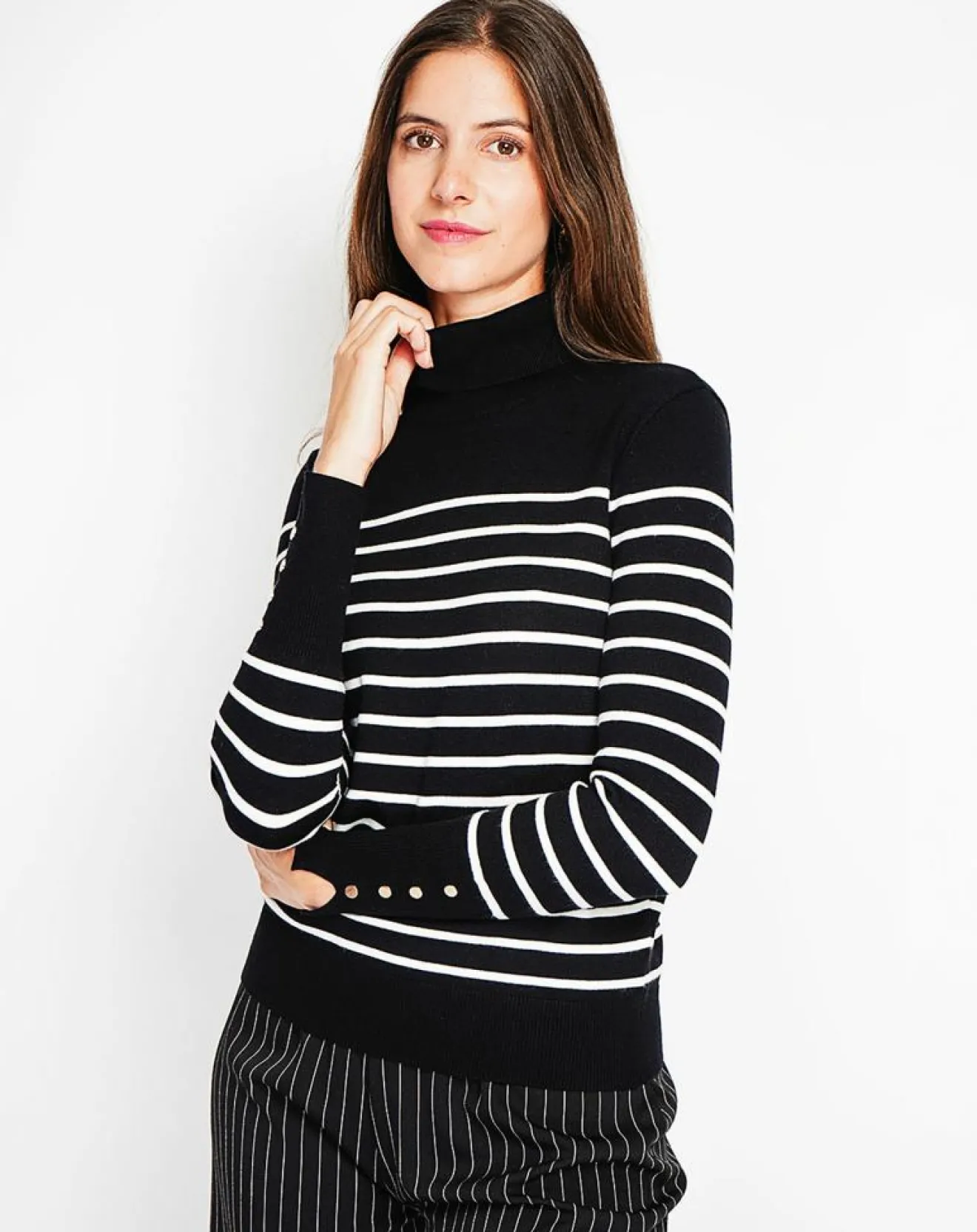 Pull mariniere col roulé boutonnage sur les manche longueur