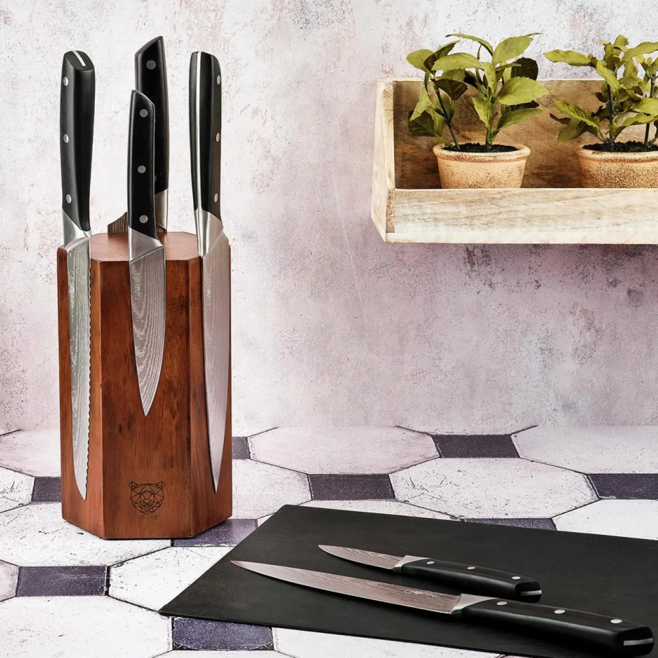Que vous soyez un chef passionné ou un amateur de cuisine, le bloc couteaux IMATRA ne vous laissera pas indifférent grâce son style des plus minimaliste et sa forme hexagonale épurée