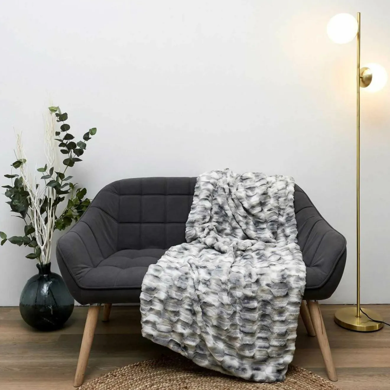 Esthétique. Ce joli plaid en imitation fourrure est également très confortable et présente un grand format !