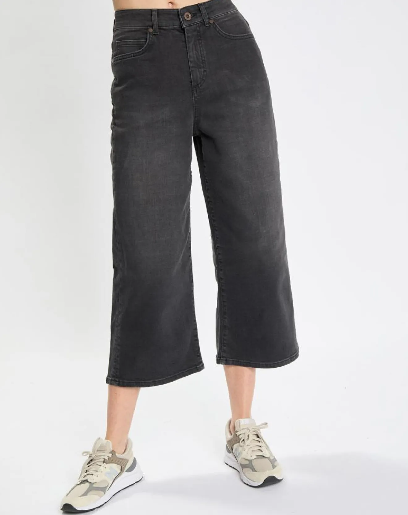 Un des favoris de cette nouvelle saison et un véritable régal pour la silhouette : le jean noir délavé – modèle VALBO large à taille haute – en denim authentique confectionné en coton mélangé extensible.