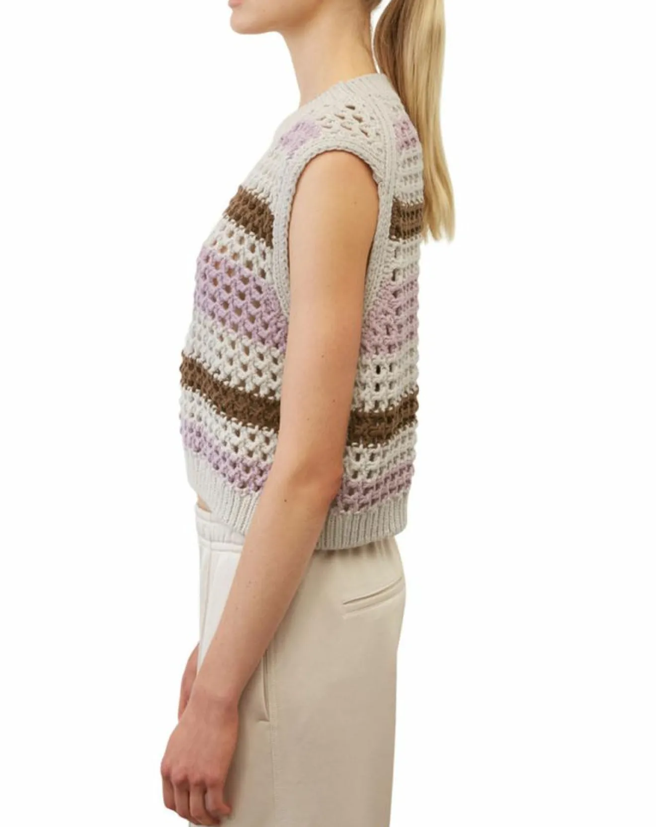 À effet tricoté à la main et à motif rayé tissé teint : le pull sans manches en grosse maille super douce à effet filet créant un motif ajouré.