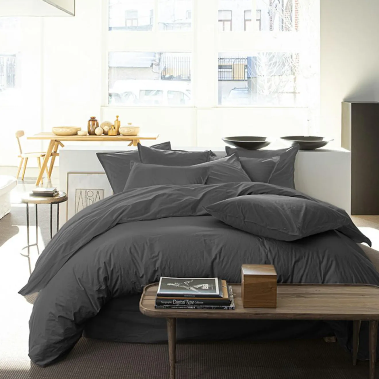 En percale de coton lavé : La technique linge de lit lavé offre une souplesse et une douceur maximales