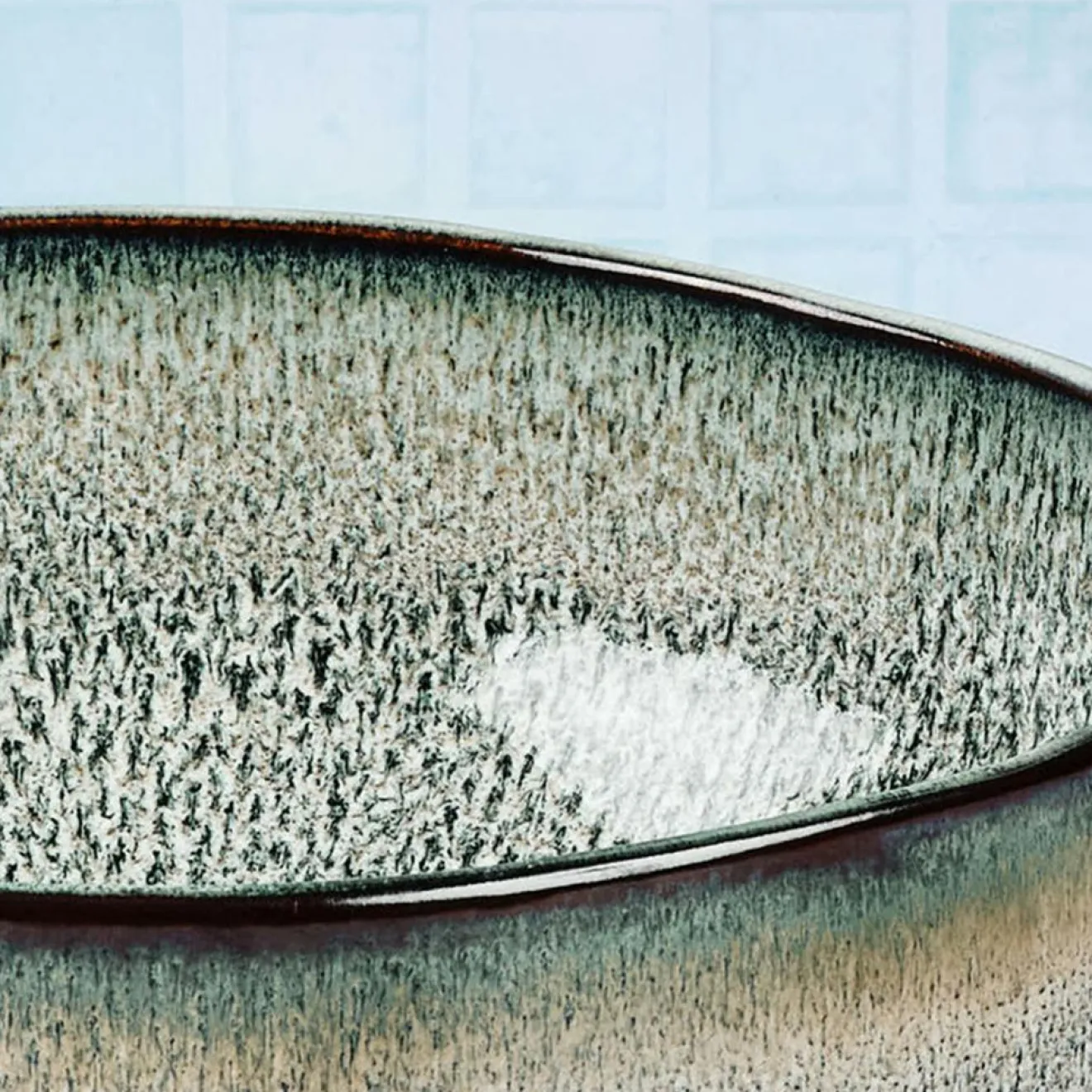 Après une première cuisson de l’argile à basse température, des émaux réactifs de couleurs différentes s’appliquent sur le grès et lui donnent un relief unique et éclatant. L’apparition de nuances de teintes que l’on retrouve d’une pièce à l’autre est le résultat d’un savant mélange artisanal des techniques de cuisson et du mode d’application de l’émail.