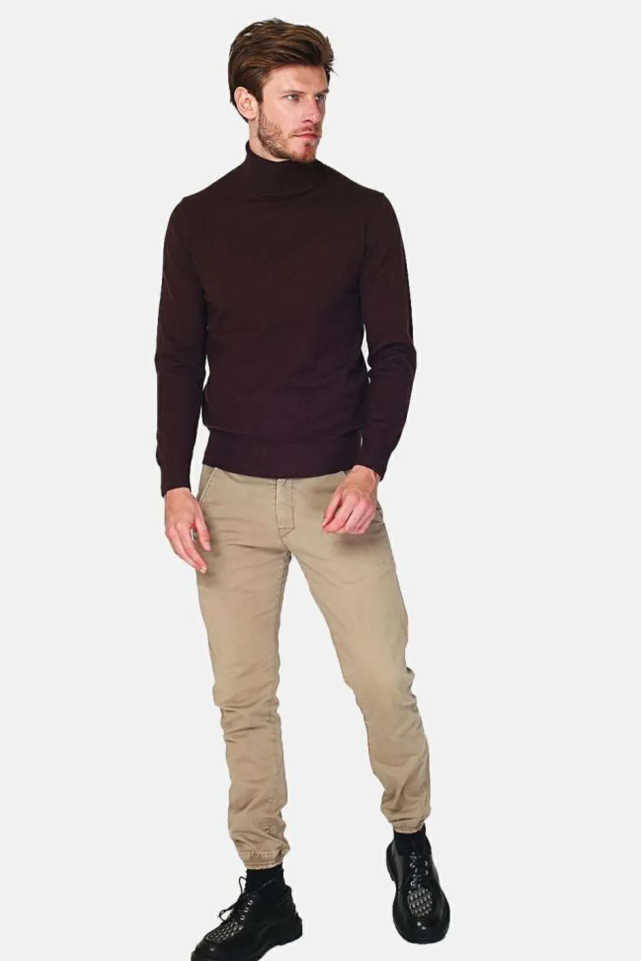 Pull col roule classique à manches longues tricotage en 3 fils