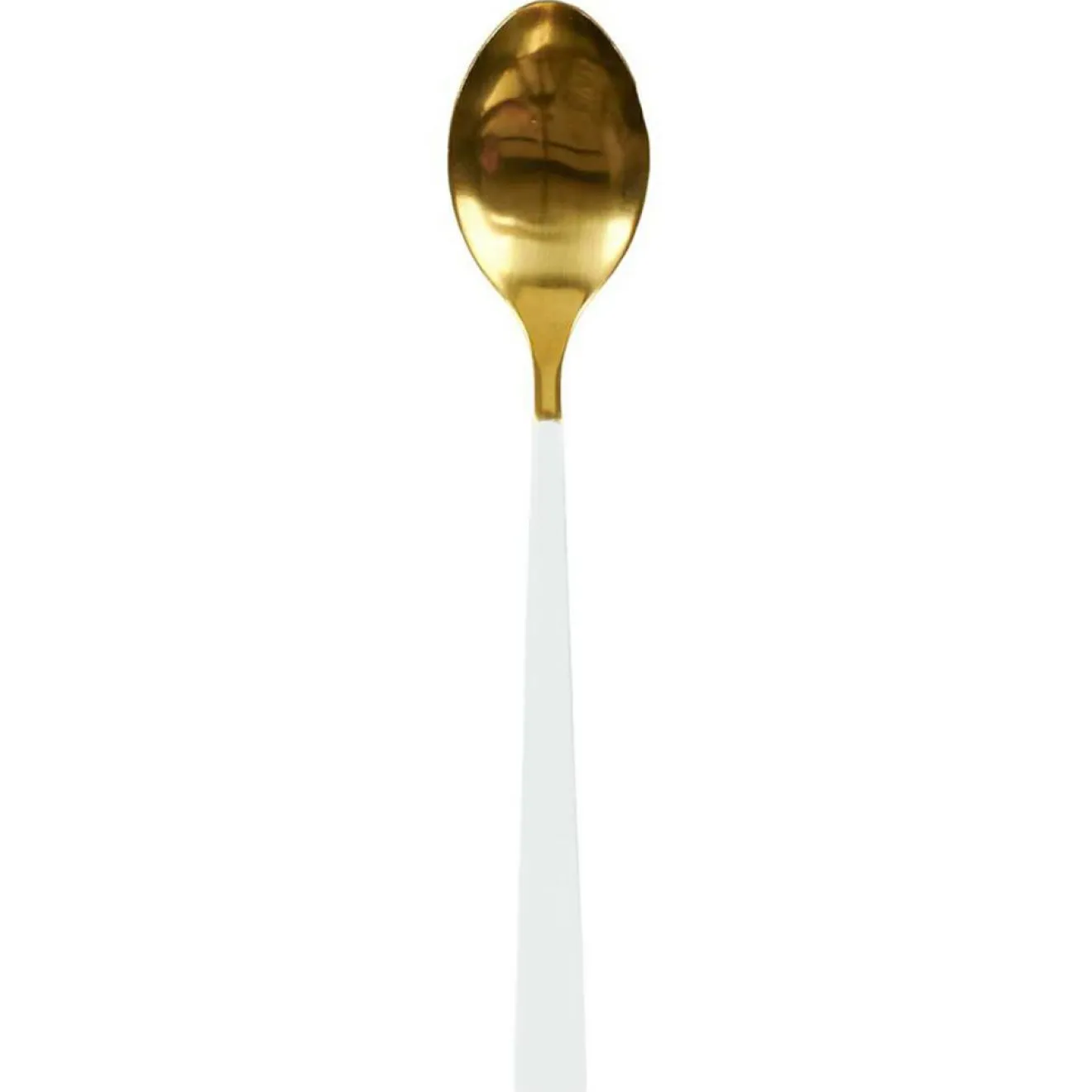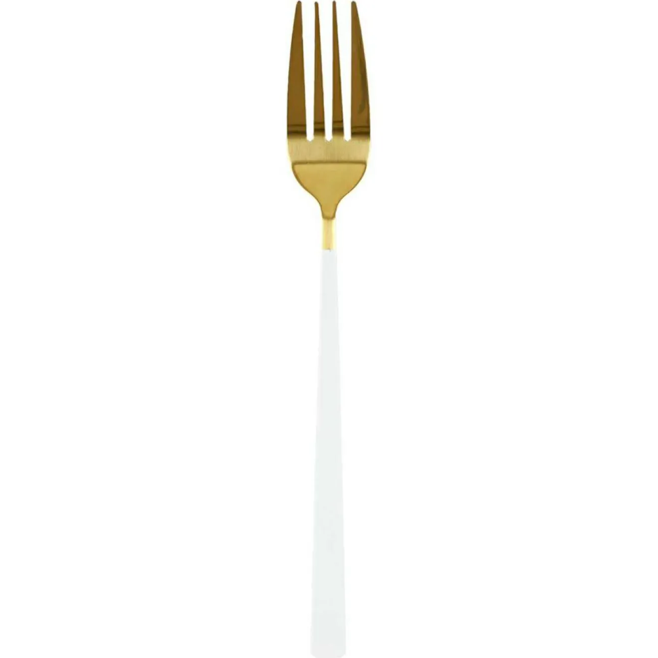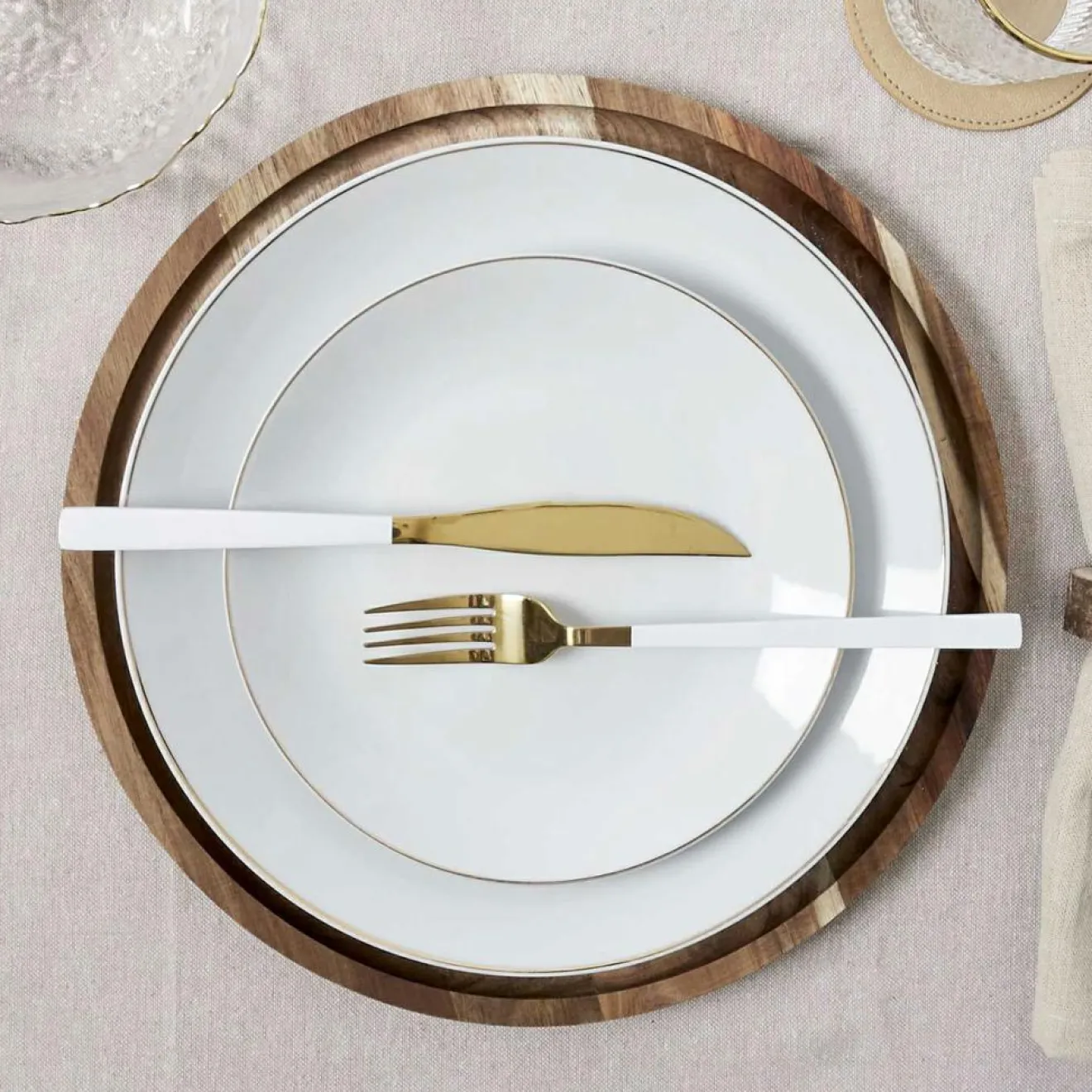 Cette jolie ménagère 16 pièces dorée et blanche sera du plus bel effet sur vos tablées !