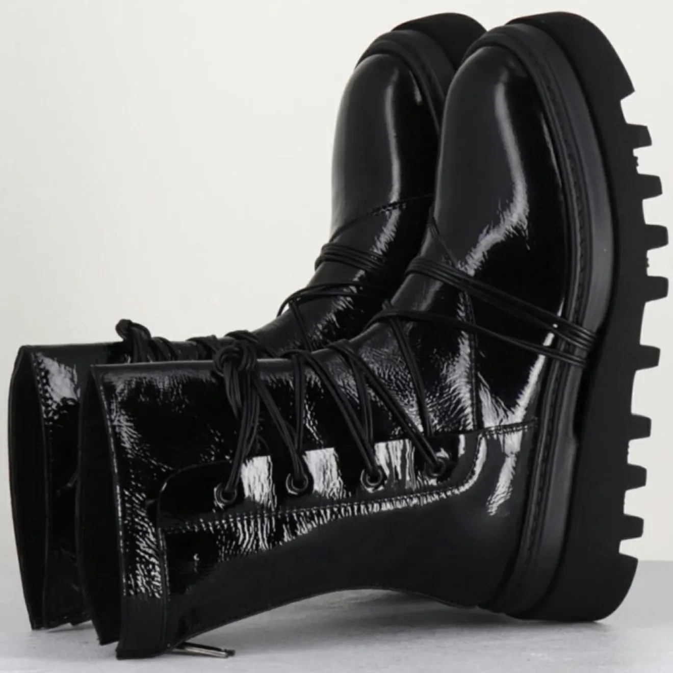 Boots tige mi-haute en cuir effet vinyle noir et laçage sur le devant