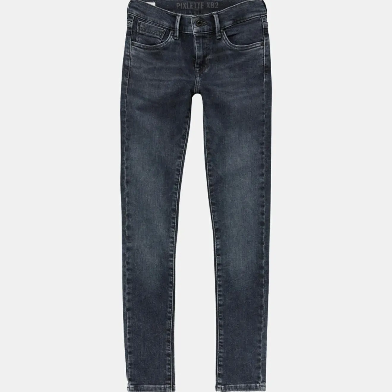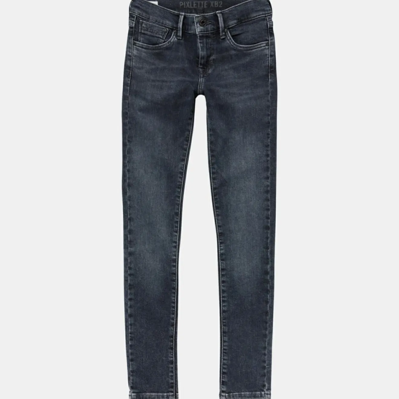 Ce jean skinny Pepe Jeans composé de coton bleu gris présente un effet légèrement délavé et des passants pour ceinture.