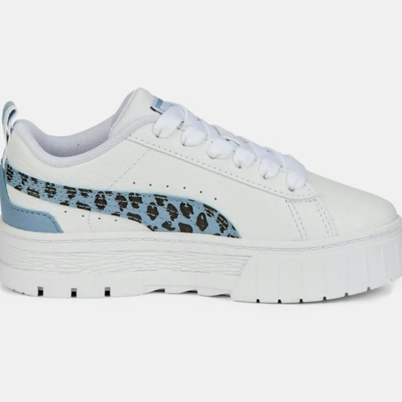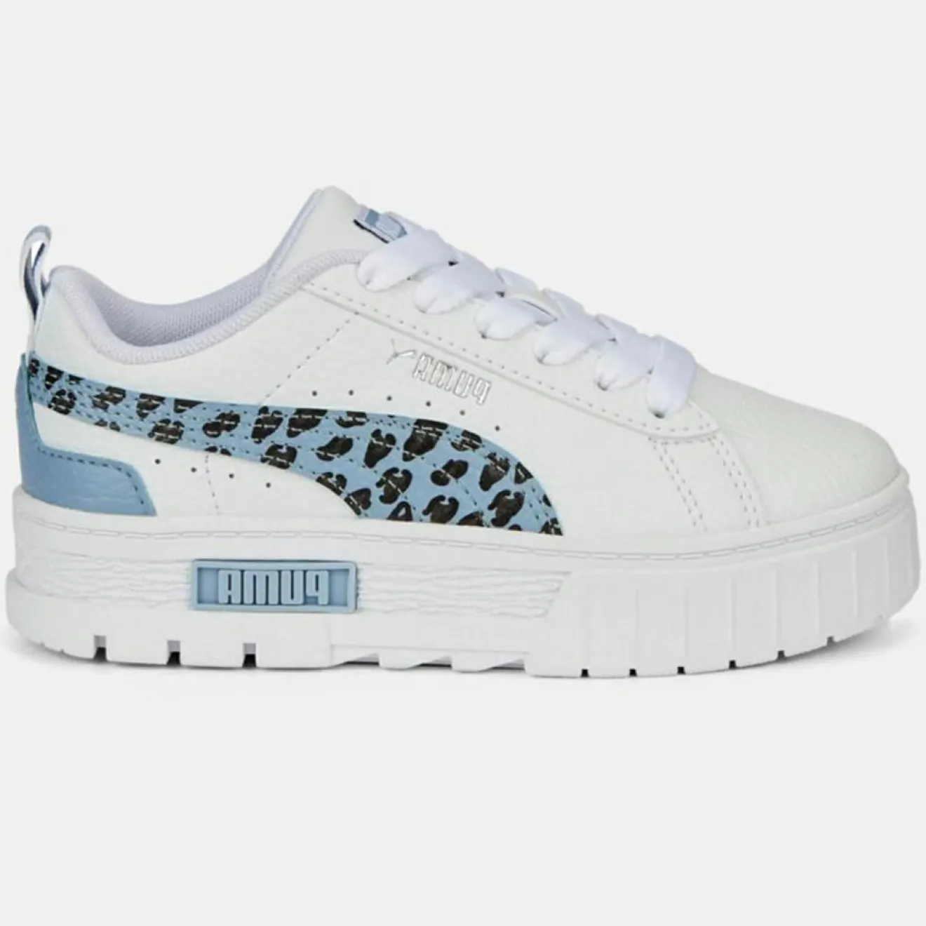 Ces baskets basses Puma en cuir séduisent par leur bande iconique imprimé léopard