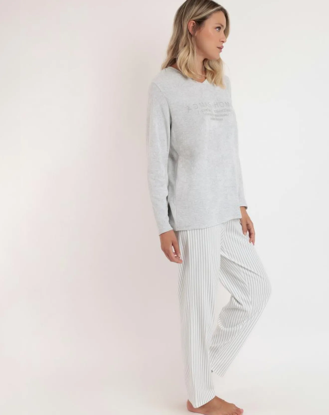 Pyjama col en V Soft Home perle