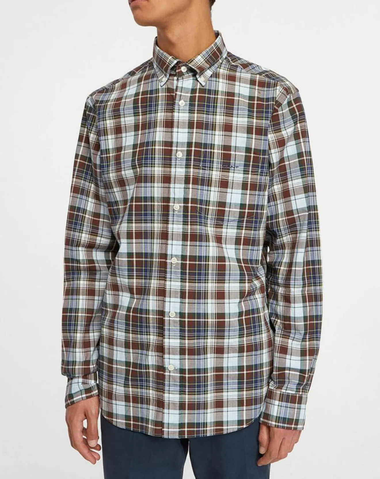 Cette chemise droite Gant en coton séduit par son imprimé style tartan.